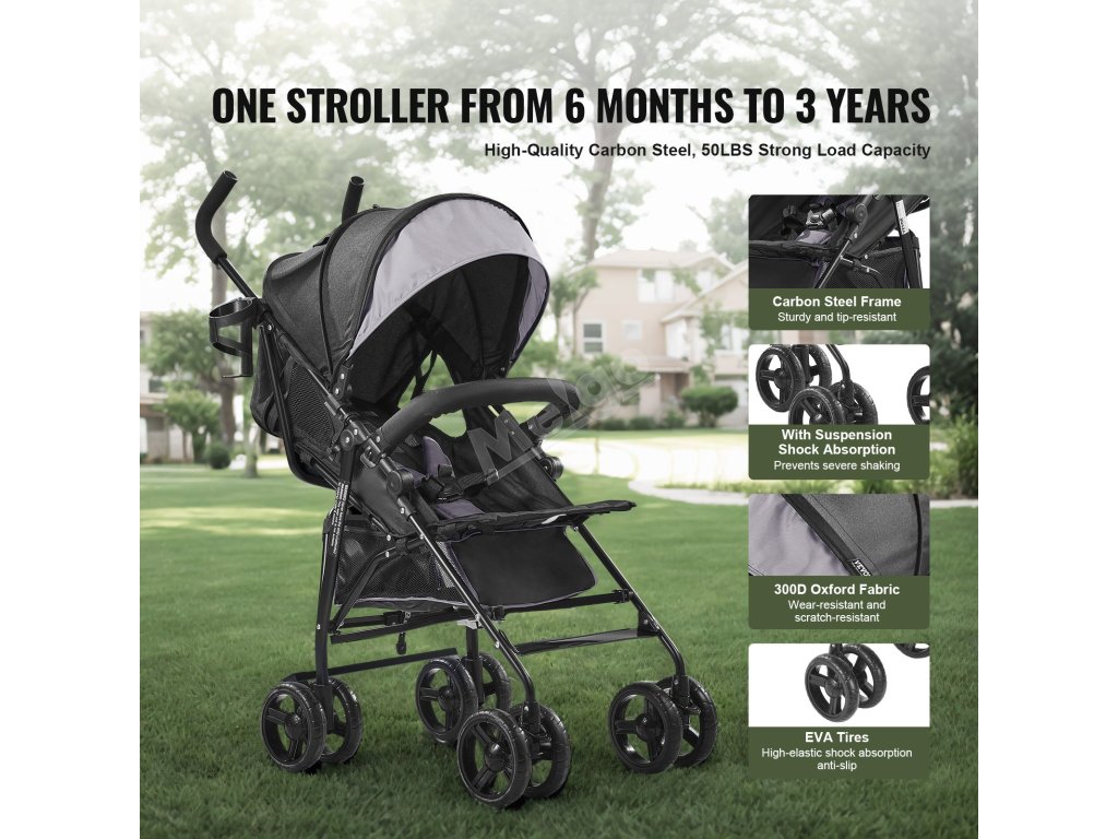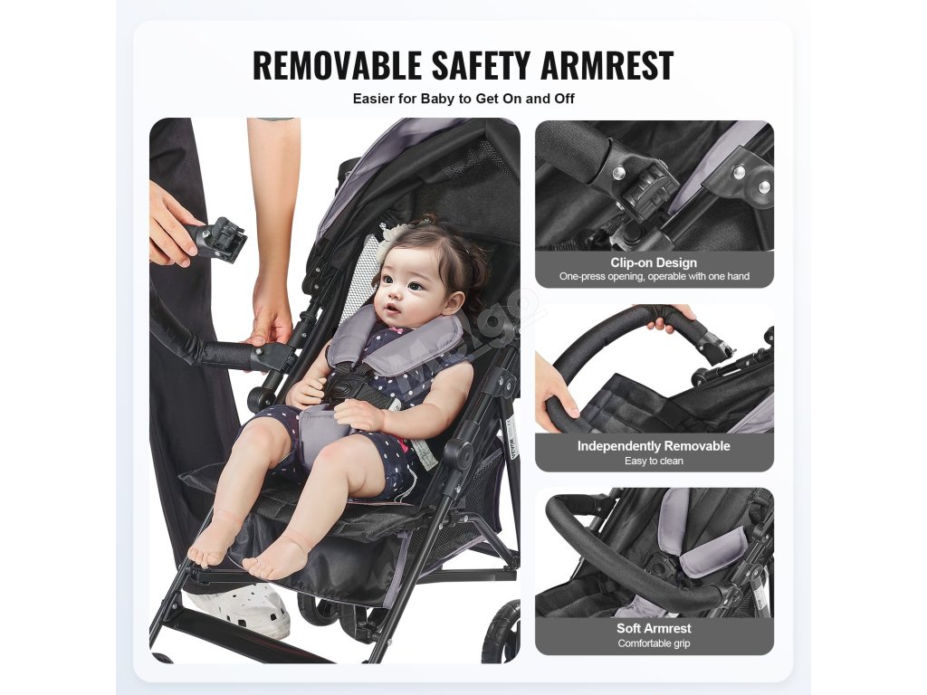 Tento přenosný kočárek je skvělým společníkem pro rodiče na cestách. Je lehký a přenosný, s robustním rámem, který poskytuje bezpečnou ochranu pro vaše dítě. Pneumatiky EVA tlumící nárazy jsou vhodné do různých terénů. Cestování s dítětem je tak snadné a bezpečné.