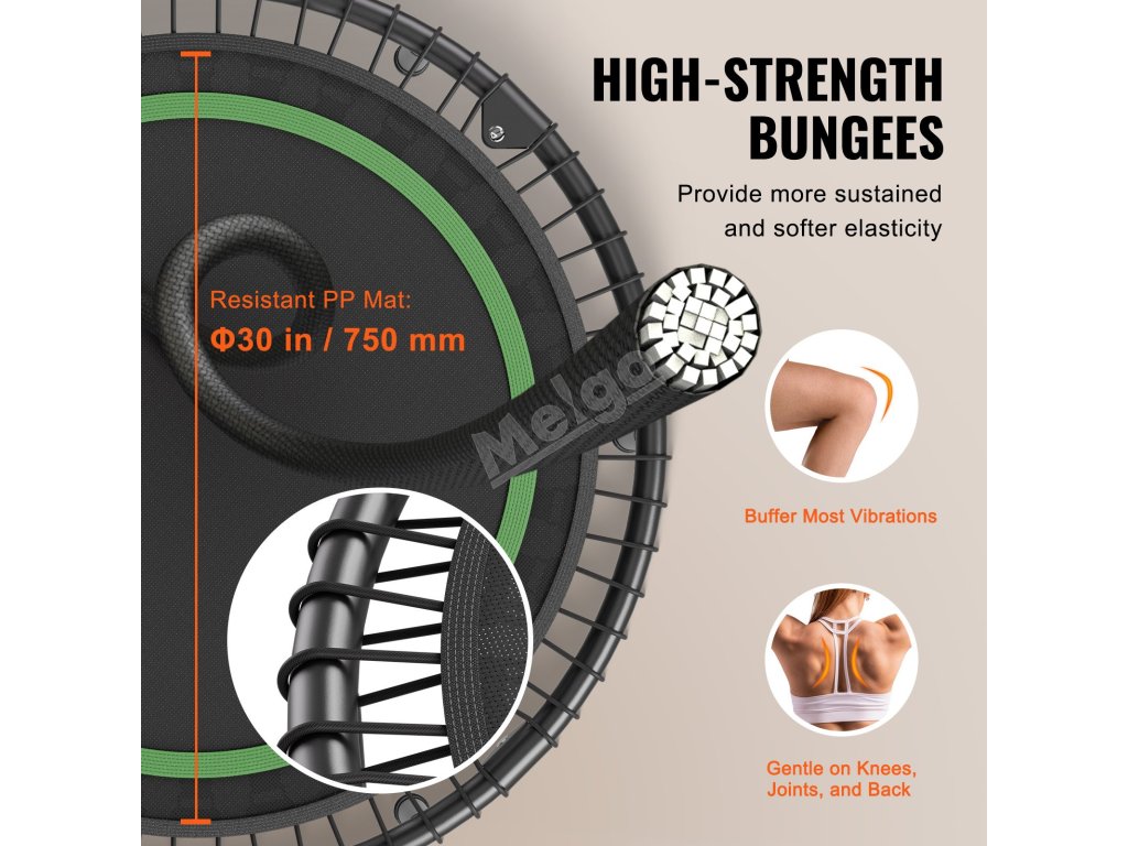 Tato mini trampolína vyrobená ze zesílené oceli a vyztužených nohou zaručuje konzistentní a spolehlivý výkon při každém tréninku.