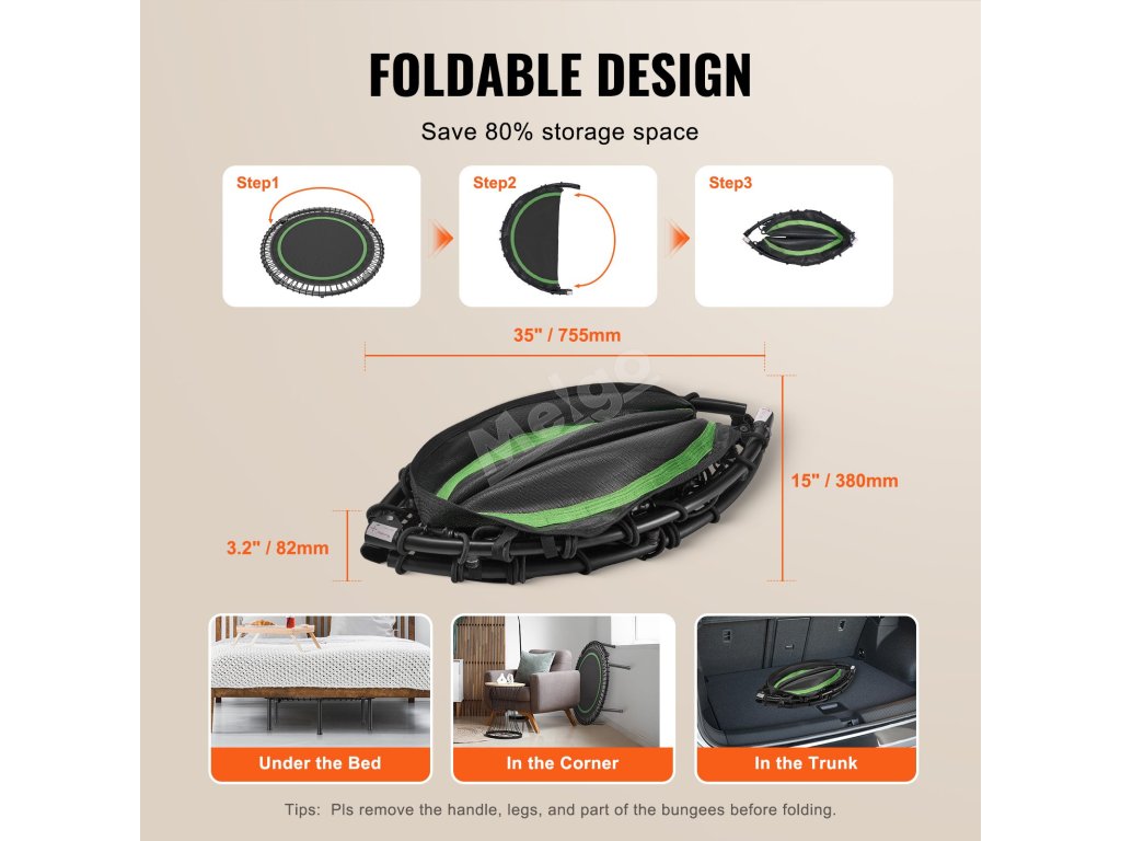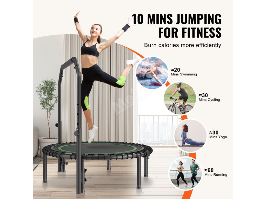 Skládací mini trampolína 40 inch nosnost 330lbs, 4 polohy pěnové madlo