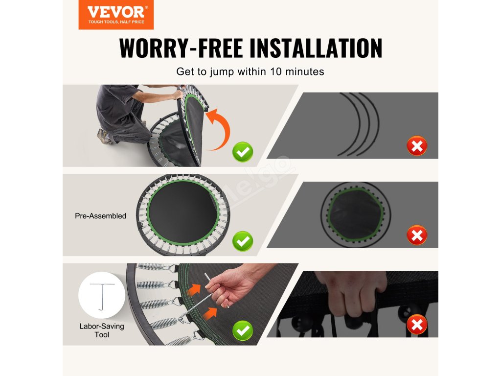 Najděte si ideální výšku odrazu pomocí rukojeti vnitřní trampolíny, která se nastavuje do 4 různých úrovní od 39 do 48,5 palce. Nastavte si výšku podle svého pohodlí a optimalizujte svůj tréninkový výkon.