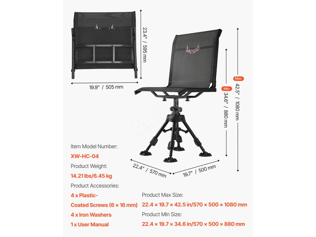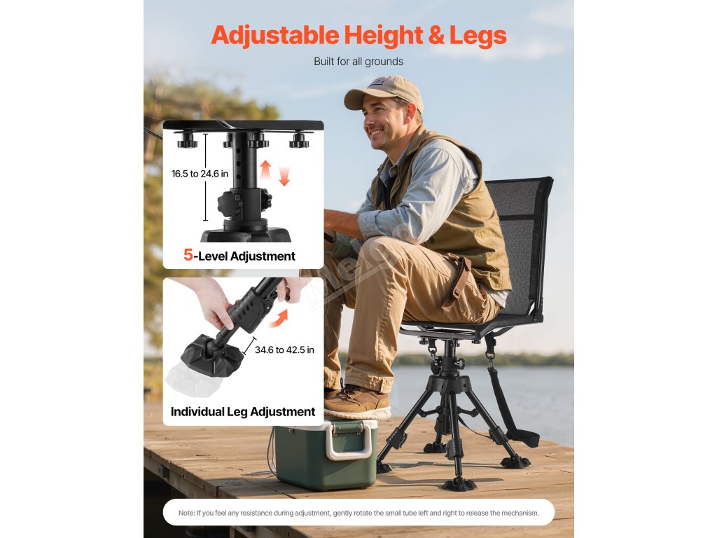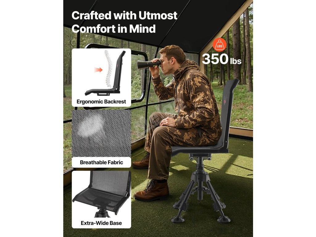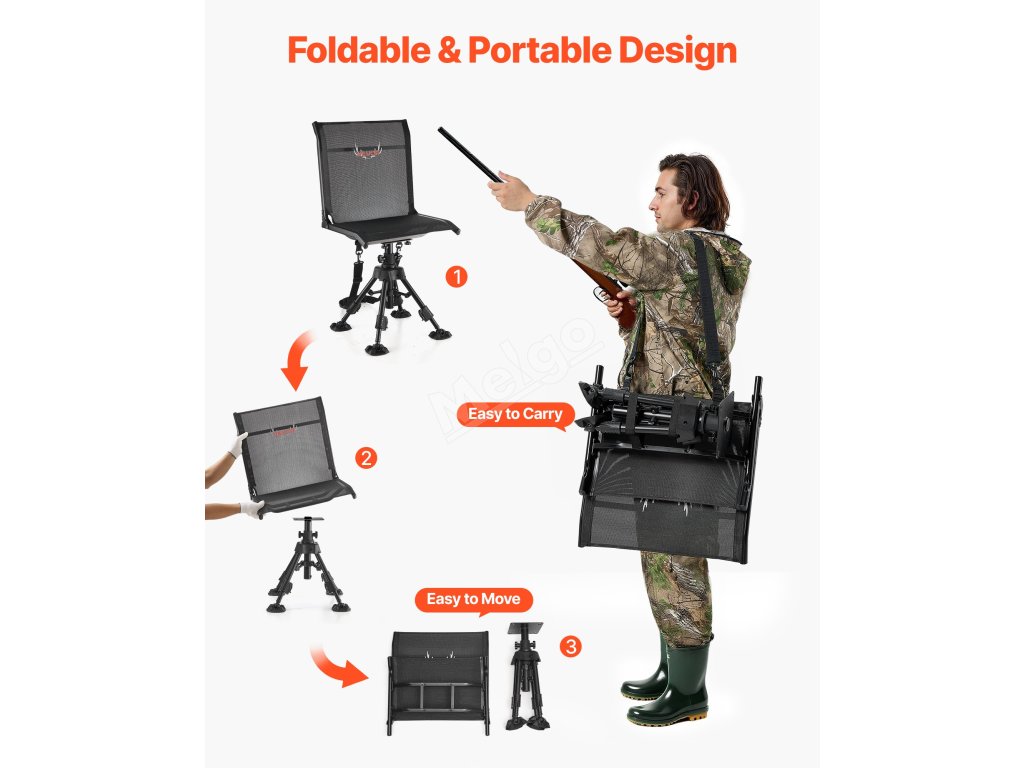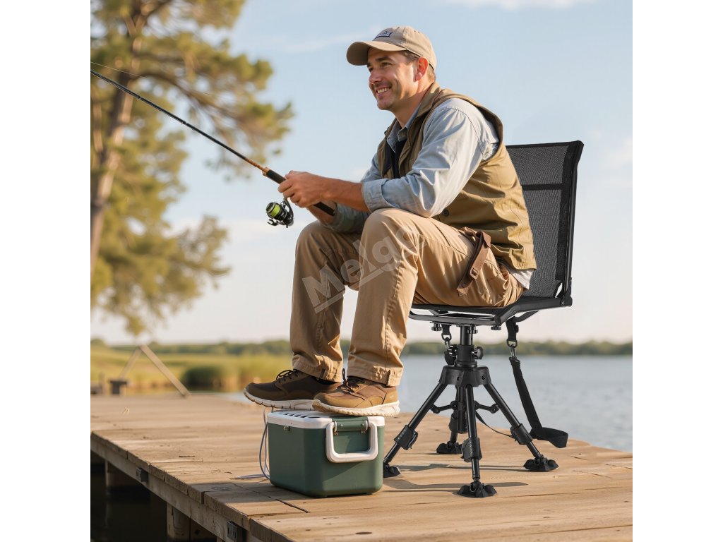 Skládací myslivecká židle, 360° otočná, přenosná, nosnost 158 kg