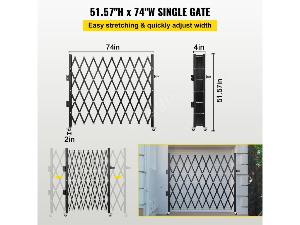 Šířka naší jednoduché skládací brány může být od 4" do 75". Výška: 50". Nabízí fyzickou ochranu vašeho majetku, věcí nebo zboží a dodává vašemu majetku profesionální vzhled.