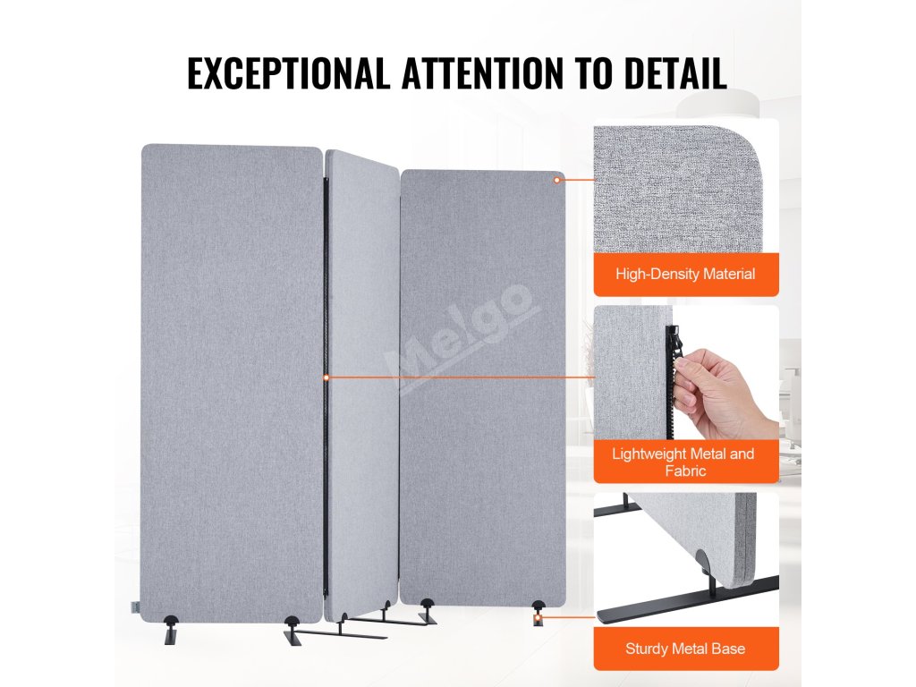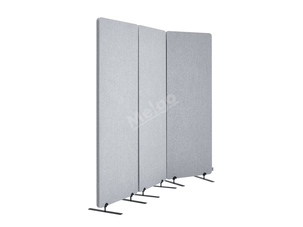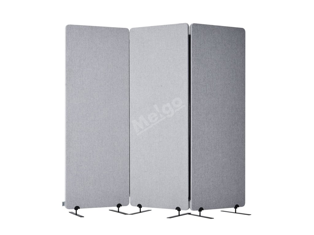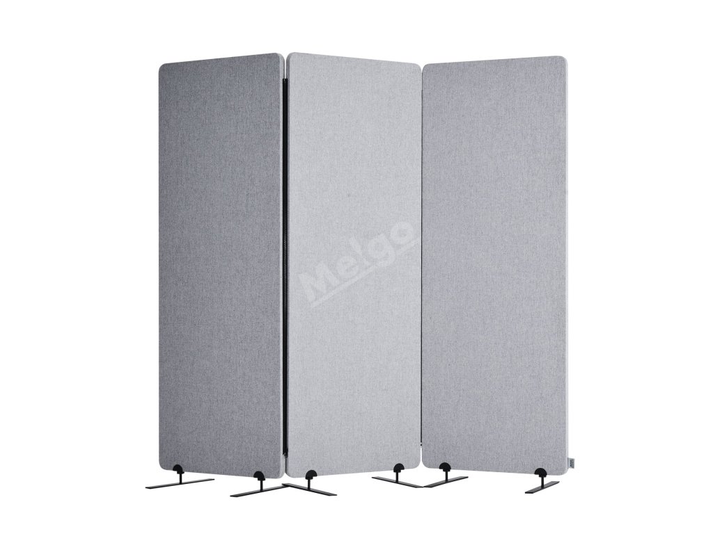 Skládací paravan 3 panely, pet polyester, zvukotěsný, šedý, stojící