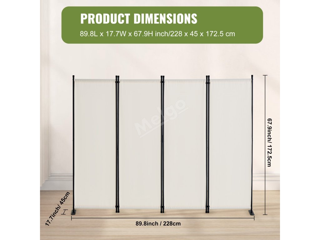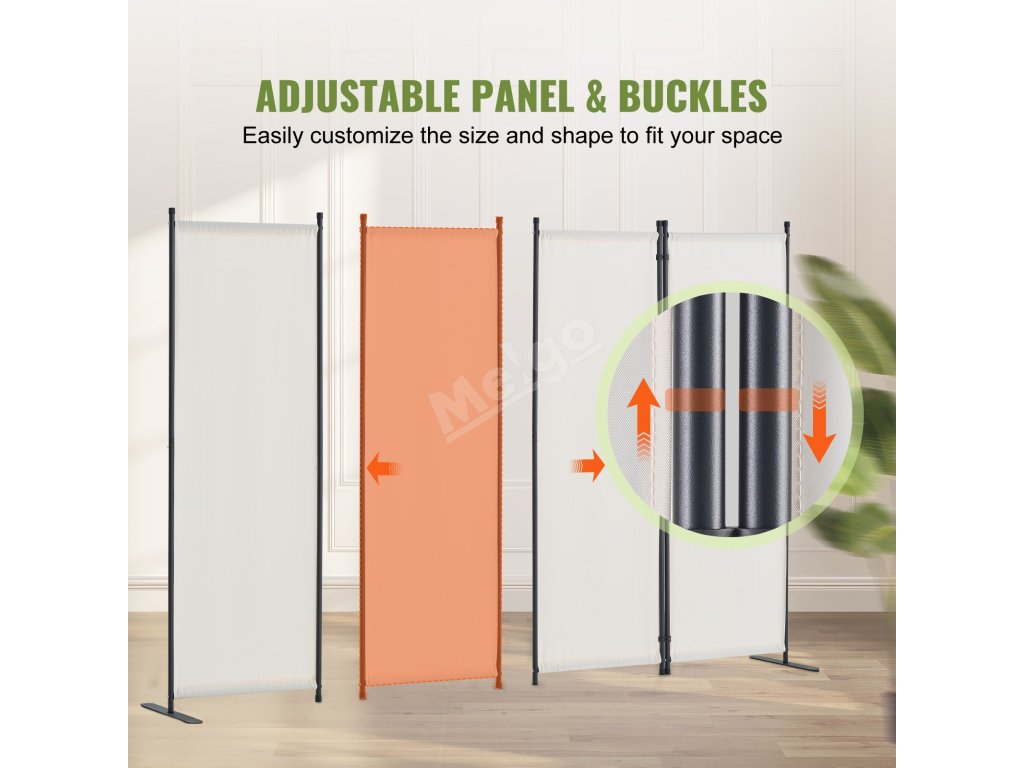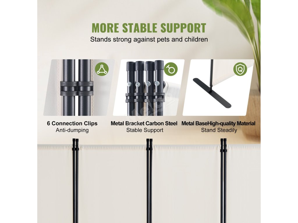 Náš rozdělovač místností je vybaven 9 spojovacími sponami a kovovou základnou, díky níž je velmi stabilní. Nepřevrátí se snadno, ani když máte v blízkosti domácí zvířata nebo děti.