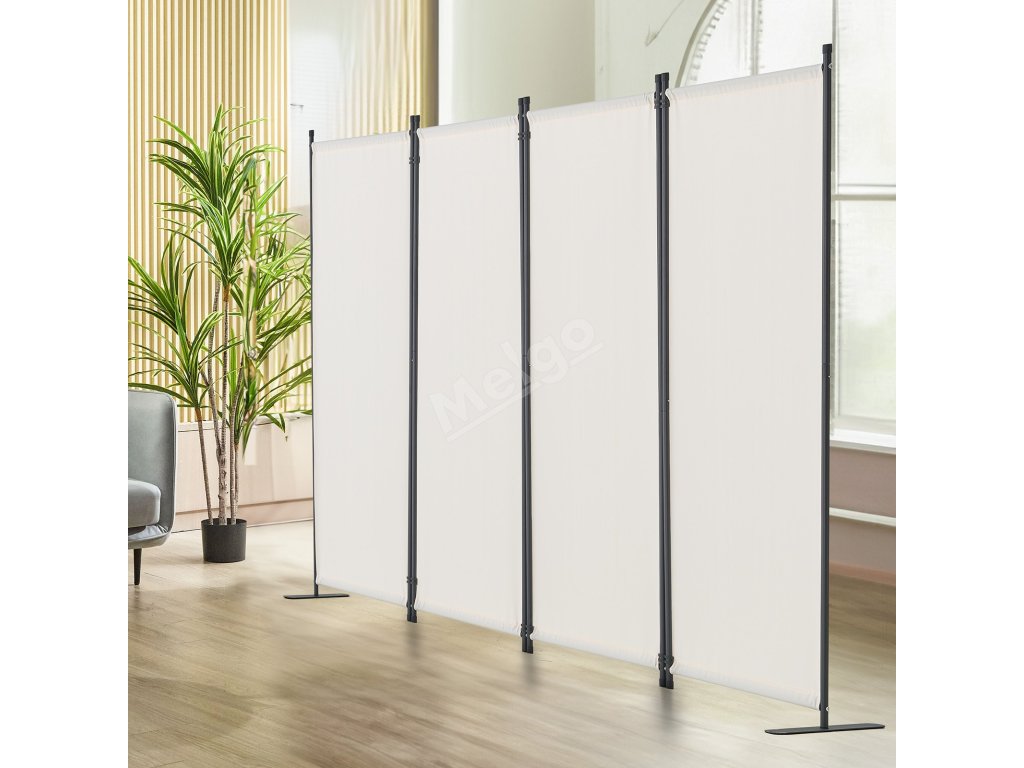 Skládací paravan 4 panely, textilní, samostatně stojící, bílý