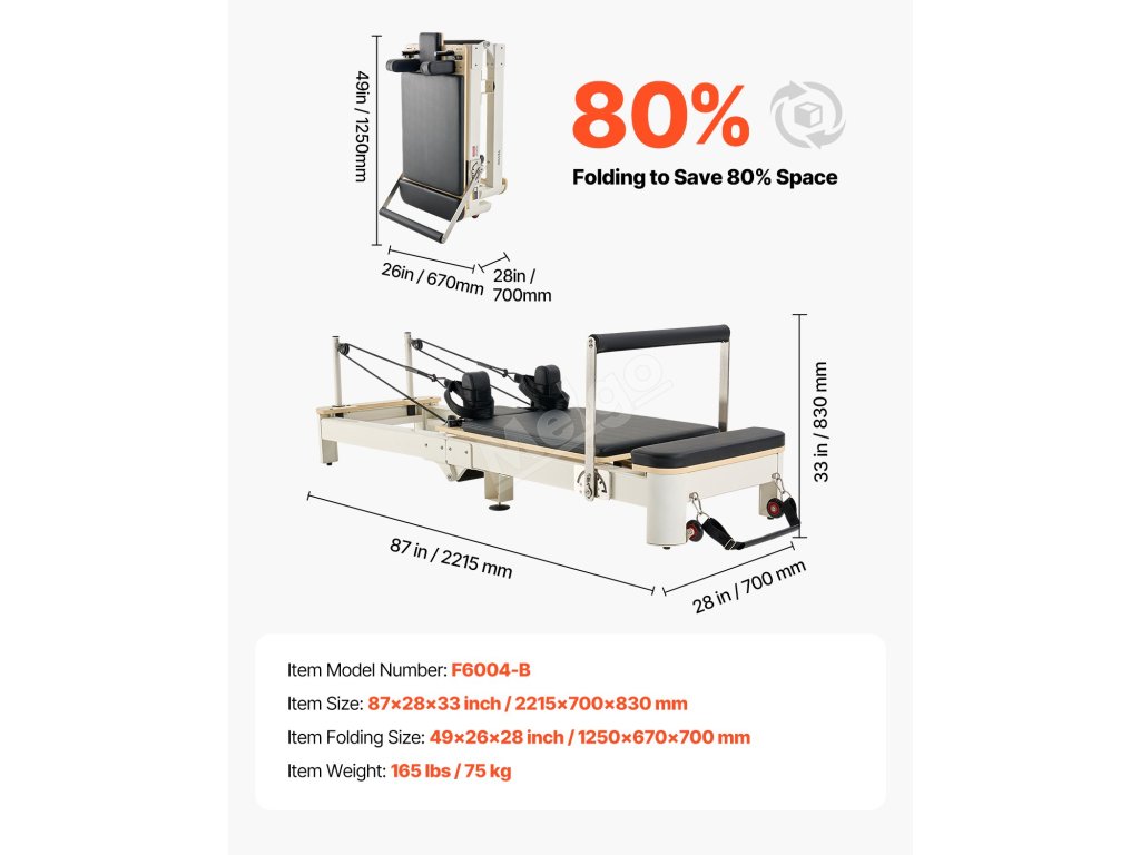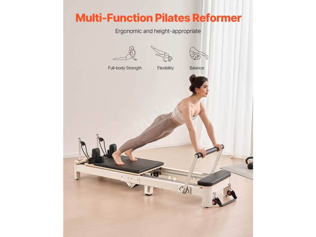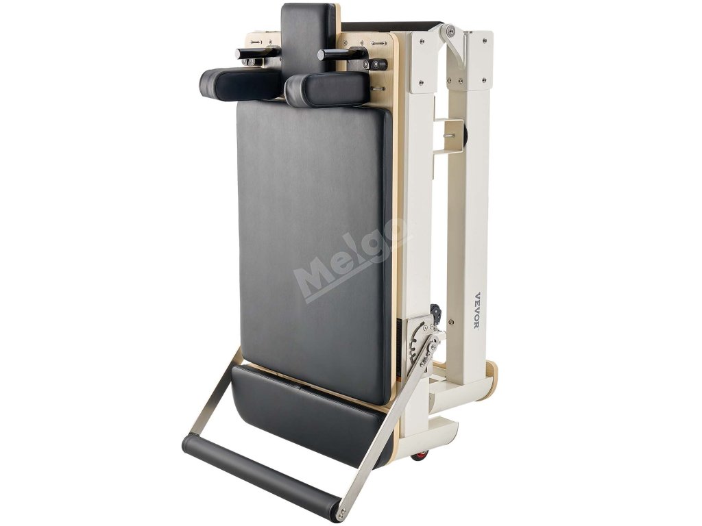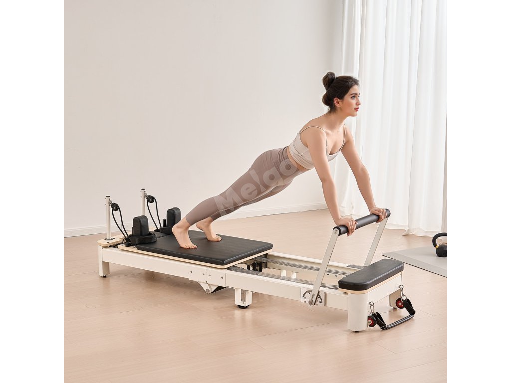 Tento pilates reformer má praktickou skládací konstrukci, která umožňuje bezproblémové skladování, takže je ideální pro domácí použití nebo menší prostory.