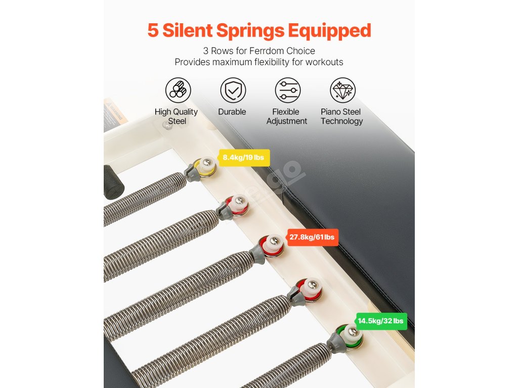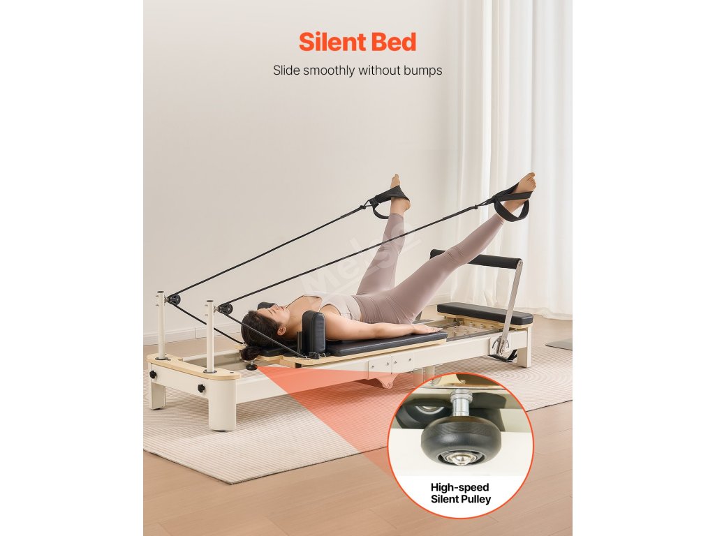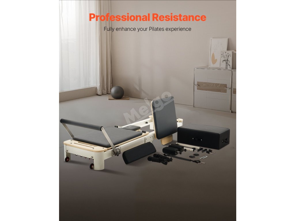 Skládací pilates reformer s boxem, pružiny a lanko, nosnost 400 LBS