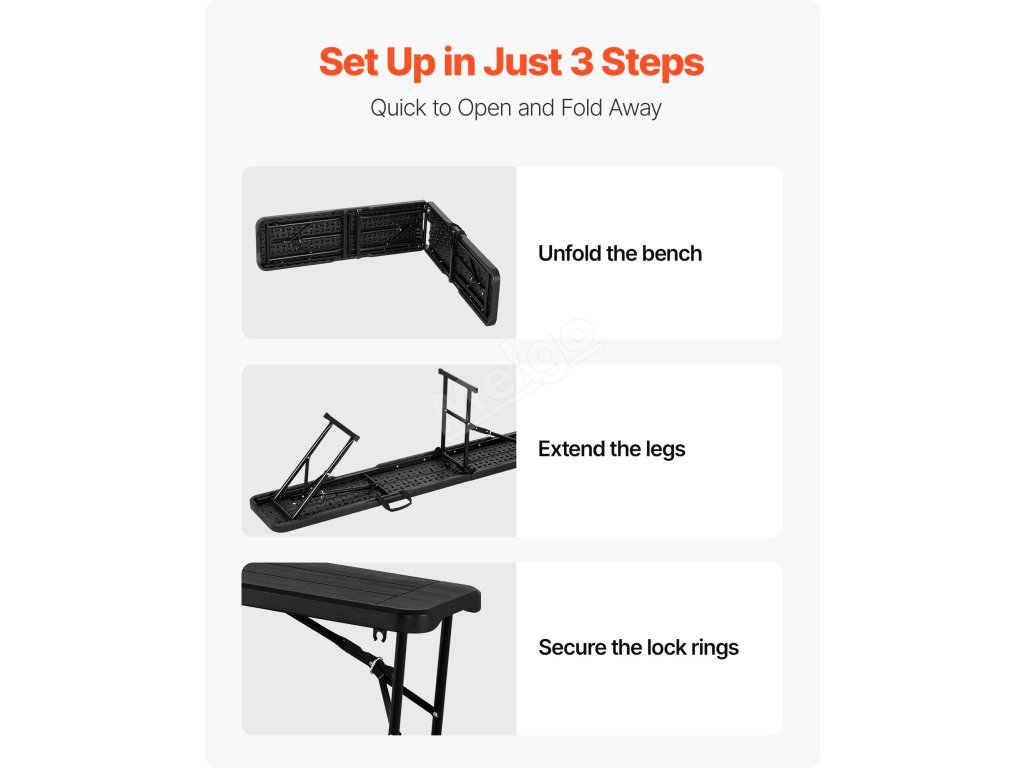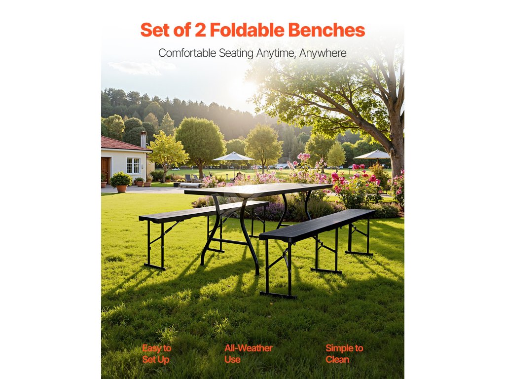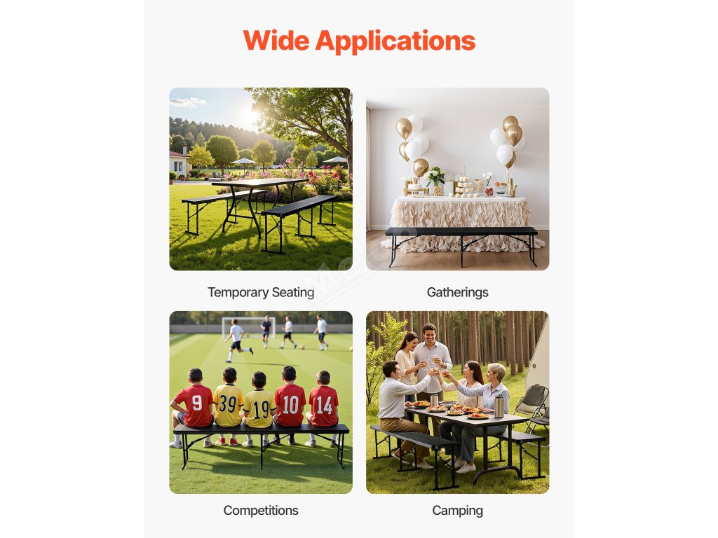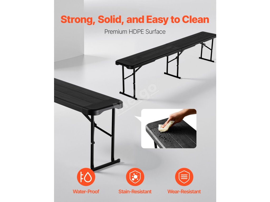 Tato přenosná lavička je vyrobena z prvotřídního materiálu HDPE, je robustní a odolná. Díky své skládací konstrukci je ideální pro sportovní akce, večírky, kempování v přírodě nebo jakékoli dočasné aktivity.