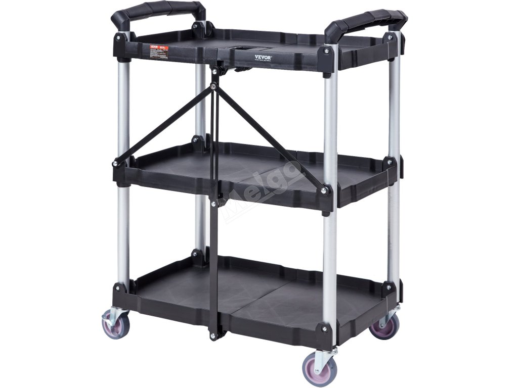 Skládací plastový vozík, 3 police, nosnost 74.8 kg, 65.1×39.2×83.2 cm