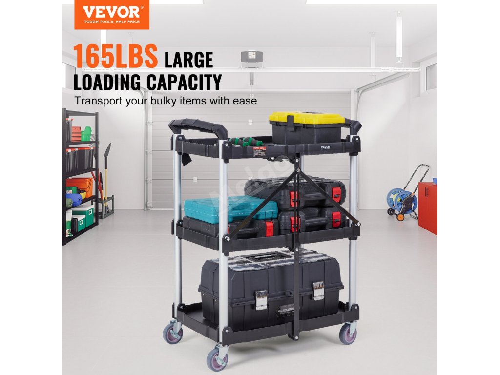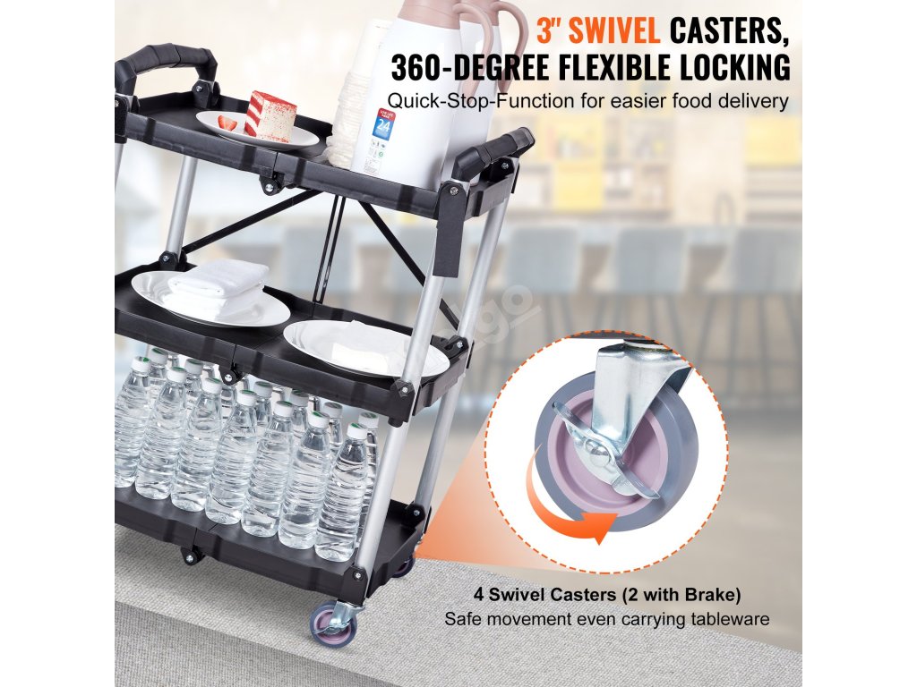 Odlehčete svým ramenům se skládacím vozíkem VEVOR se 3 policemi, ať už chcete ulehčit svému prostoru, nebo potřebujete spolehlivý vozík na přepravu zboží.Nosnost 165 lb a 3" otočná kolečka snadno přepraví těžký náklad. Jednoduše jej složte a vezměte si jej s sebou, kamkoli půjdete.