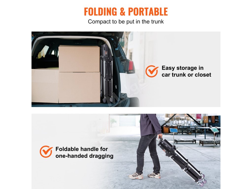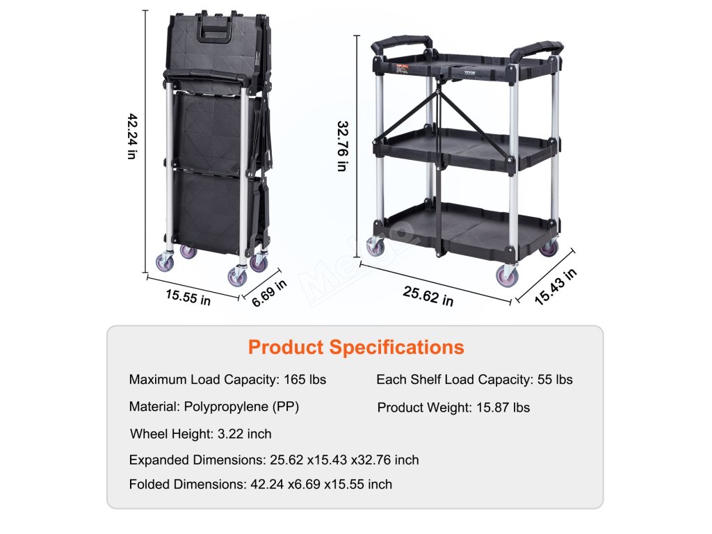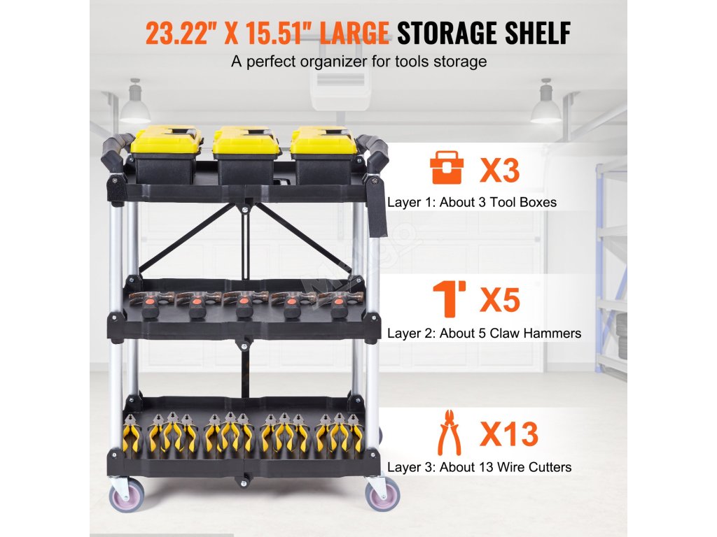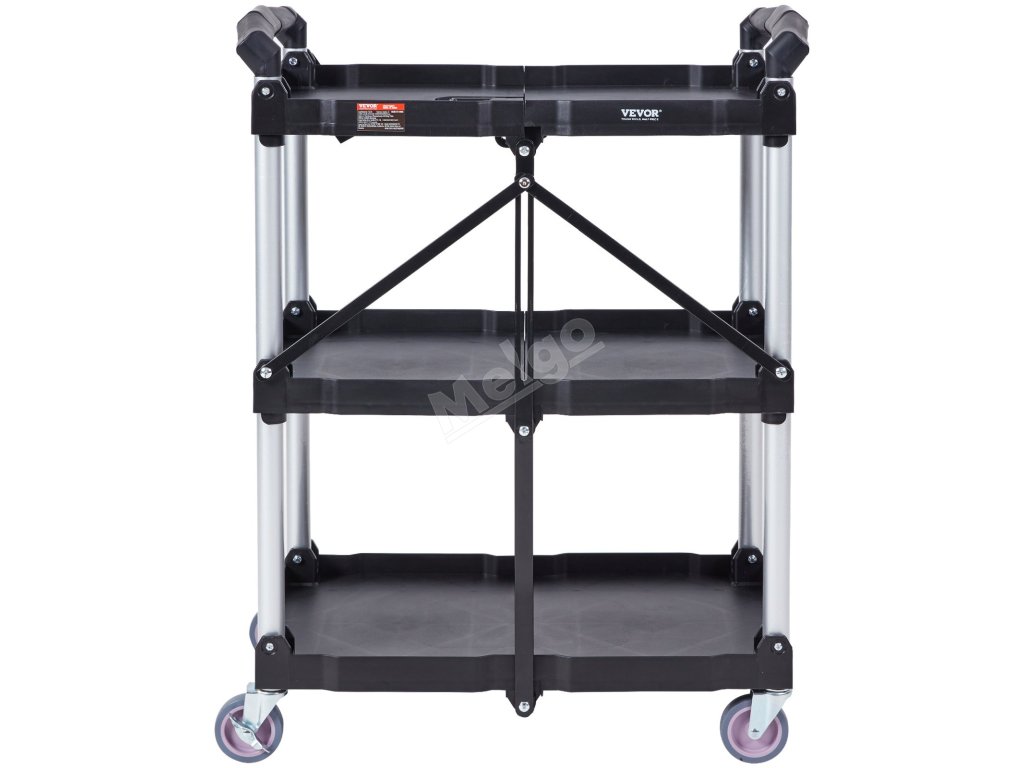 Kompaktní užitkový vozík VEVOR lze rychle složit na šířku 6,69 palce, abyste jej mohli pohodlně skladovat a přitom zabíral jen minimum místa. Je přenosný a snadno se přenáší na cestách. velký úložný prostor se 3 policemi pro efektivní kategorizaci a uspořádání různých předmětů.