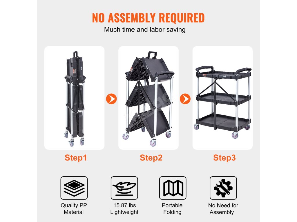 Okamžité použití v pouhých 3 jednoduchých krocích, bez nutnosti složité montáže. Díky vestavěné konstrukci s bezpečnostním zámkem může tento servisní vozík bezpečně nakládat předměty, aniž by došlo k jejich deformaci nebo zhroucení.