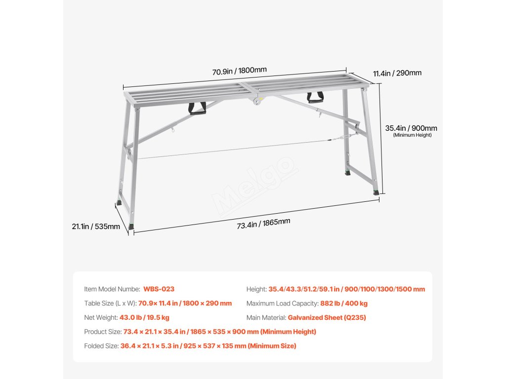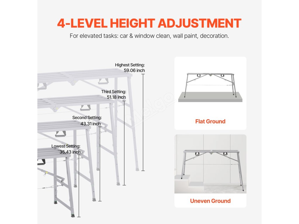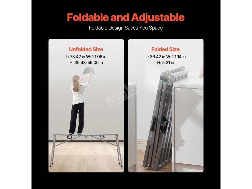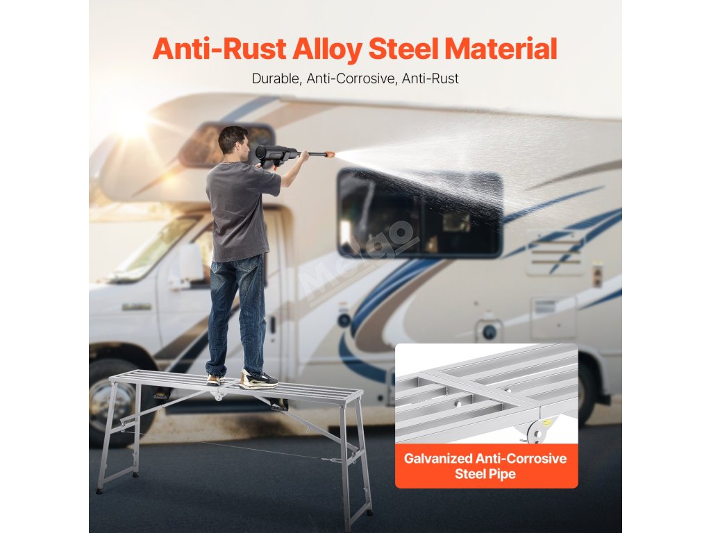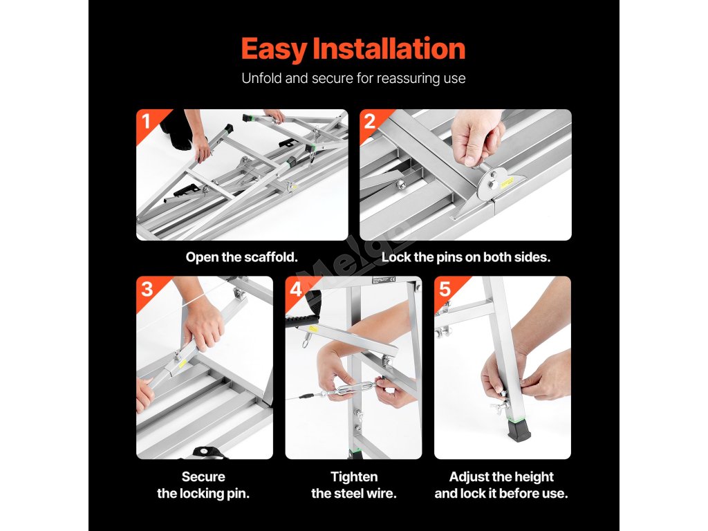 Prenosné lešenie VEVOR je navrhnuté na jednoduchú prepravu, takže je ideálne na všetky projekty na stavenisku alebo na domáce úpravy pre domácich majstrov. Jeho funkcia rýchleho zloženia šetrí čas, pretože vám umožní ho bez námahy premiestniť a uskladniť.