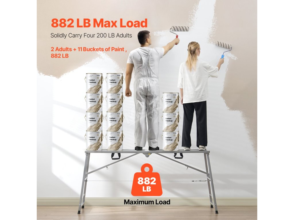 Vysokopevnostný rám z nehrdzavejúcej ocele poskytuje stabilnú polstrovanú plošinu s nosnosťou až 880 kg, vďaka čomu zvládne rôzne úlohy, od maľovania až po údržbu.