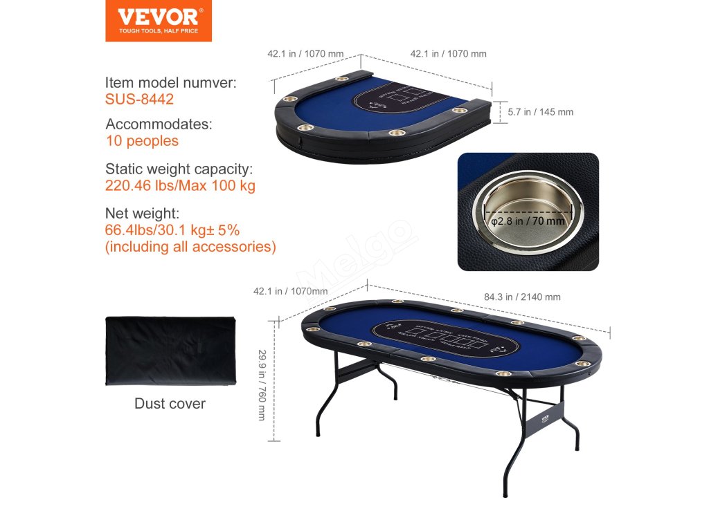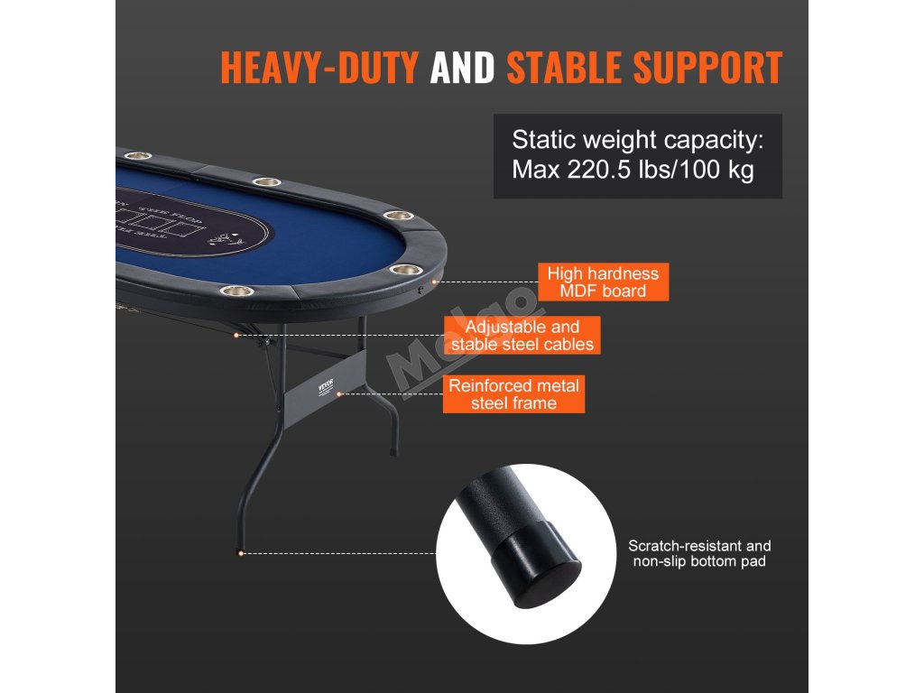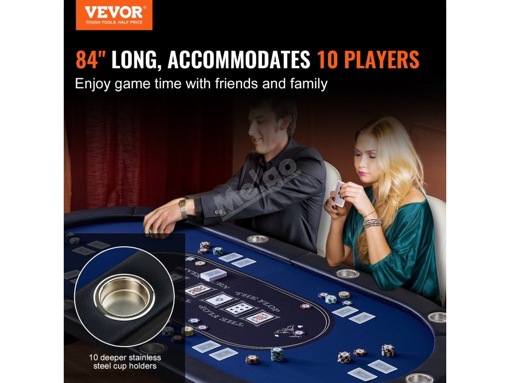 Nabízíme vám skládací, robustní pokerový stůl určený pro zábavu. Snadno se na něj vejde 10 hráčů najednou. Můžete si tak do sytosti užít hraní her, jako je Texas Hold'em a další karetní hry.