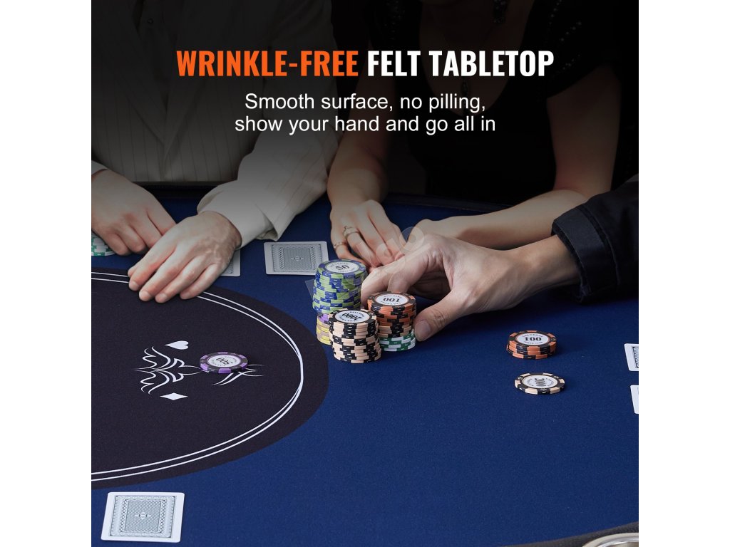 Povrch stolu Texas Holdem má hladkou a odolnou plsť, která umožňuje bezproblémové provádění činností, jako je kontrola karet, manipulace s žetony a odhalování karet. Ani při dlouhodobém používání se nepoškodí ani nezasekne.