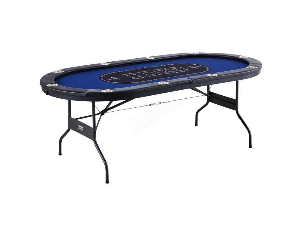 Skládací pokerový stůl pro 10 hráčů, oválný 84", s držáky na sklenice