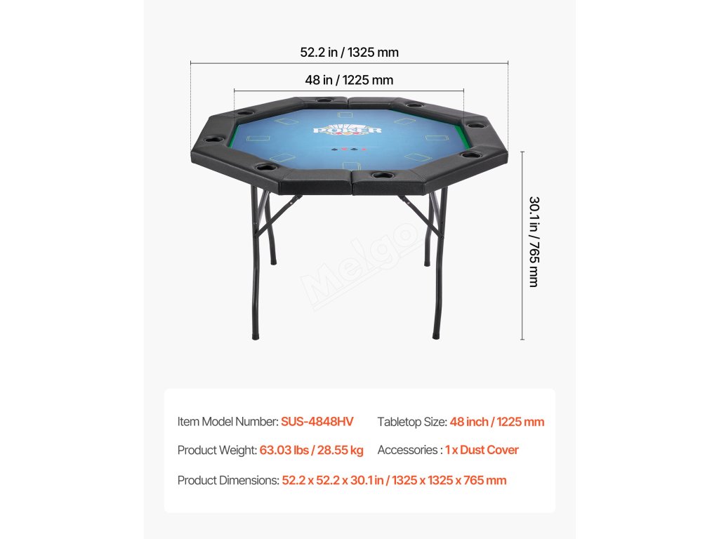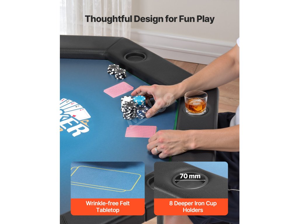 Skládací pokerový stůl pro 8 hráčů 1220 mm, filc, držáky sklenic