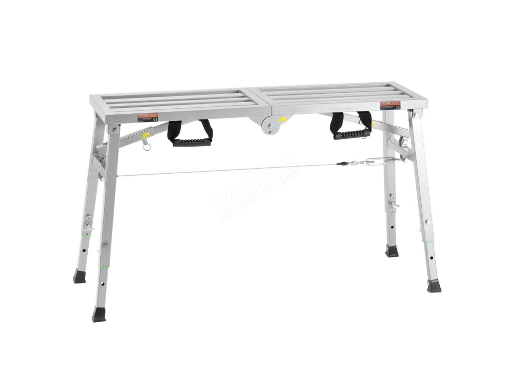 Vďaka individuálne nastaviteľným teleskopickým nohám môžete ľahko prispôsobiť výšku tak, aby vyhovovala akémukoľvek pracovnému povrchu, a to aj na nerovnom teréne. Táto prispôsobivosť umožňuje vždy pevné a bezpečné nastavenie.