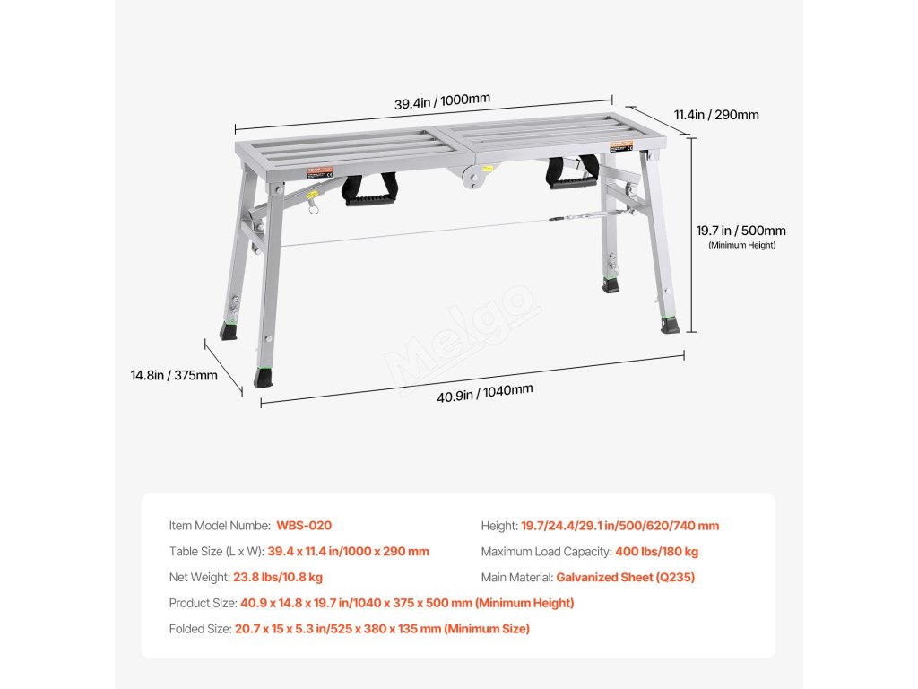 Vysokopevnostný rám z nehrdzavejúcej ocele poskytuje stabilnú polstrovanú plošinu s nosnosťou až 400 kg, vďaka čomu zvládne rôzne úlohy, od maľovania až po údržbu.