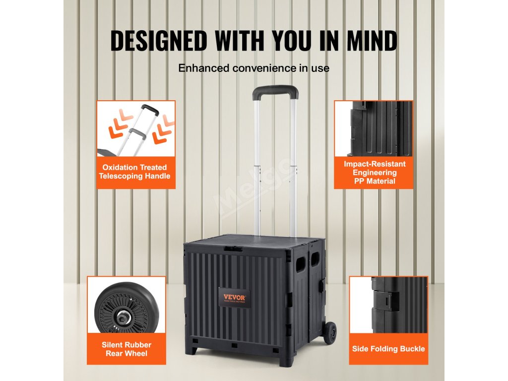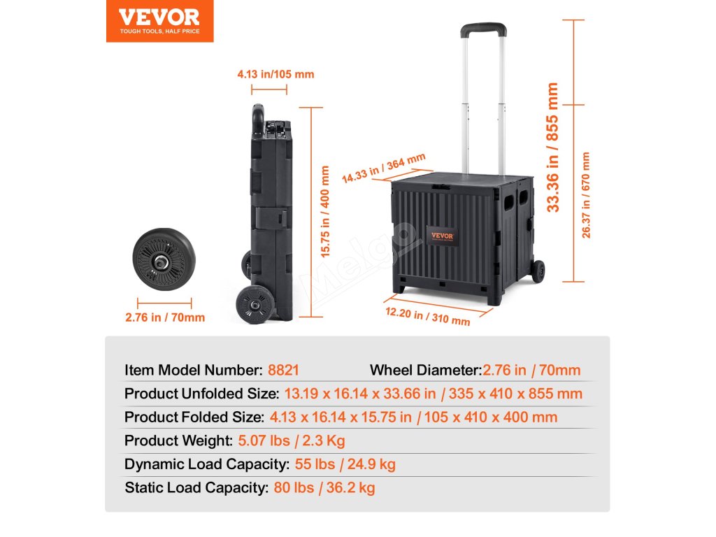 Skládací přenosný vozík, nosnost 80 lbs, vysouvací rukojeť, 2 kolečka