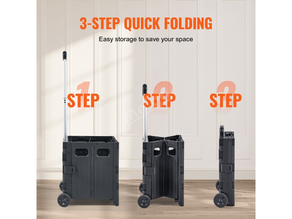 Tento skládací nákupní vozík složíte během chvilky, ať už nakupujete, nebo cestujete po světě! Díky teleskopické rukojeti a robustní nosnosti je to jediný vozík, který kdy budete potřebovat.