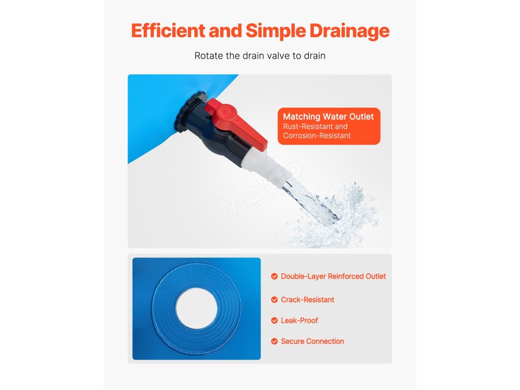 Toto jazierko pre ryby je vybavené odtokovým otvorom s veľkým priemerom, ktorý umožňuje rýchle vypustenie vody jednoduchým otočením ventilu, čím šetrí čas potrebný na výmenu vody a uľahčuje údržbu.