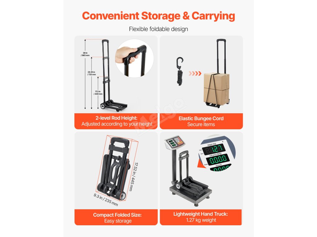 Tento ruční vozík s robustními koly a odolným rámem snadno zvládne těžký náklad. Když se nepoužívá, dá se složit pro kompaktní skladování a šetří místo - skvělý pomocník pro každodenní úkoly!