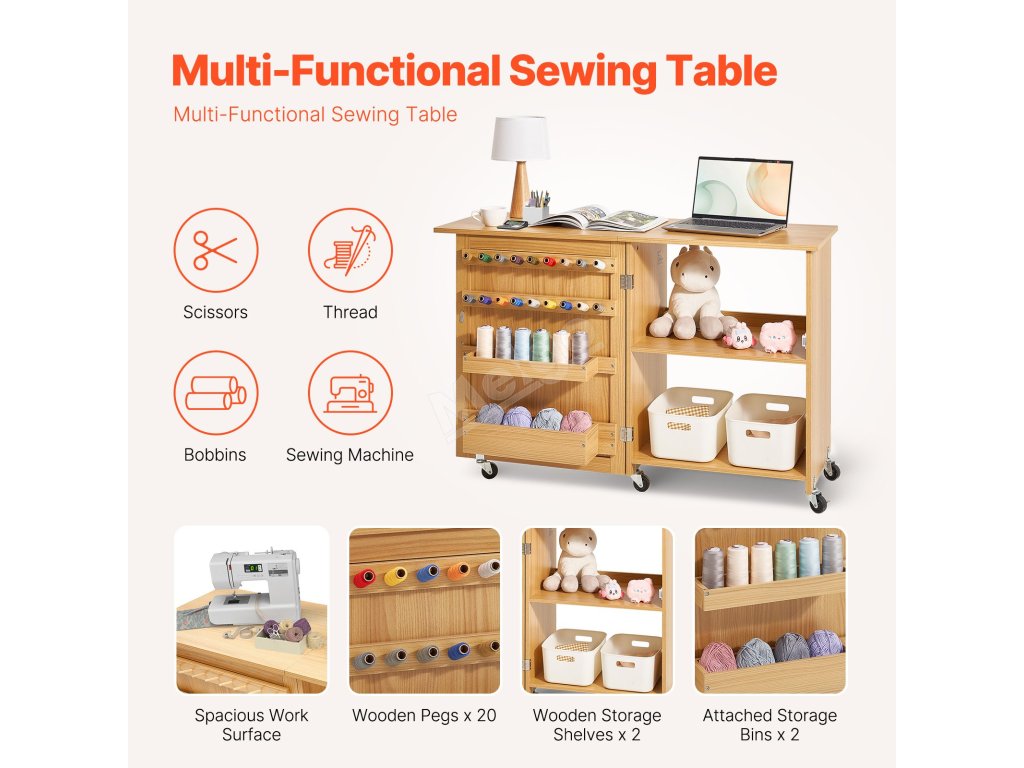 Tento stůl na šicí stroje se skládací konstrukcí a děleným úložným prostorem unese až 88 kg. Je ideální pro každodenní použití jako šicí stanice nebo kancelářský stůl, a když se nepoužívá, lze jej snadno složit do boční skříňky a uložit různé předměty.