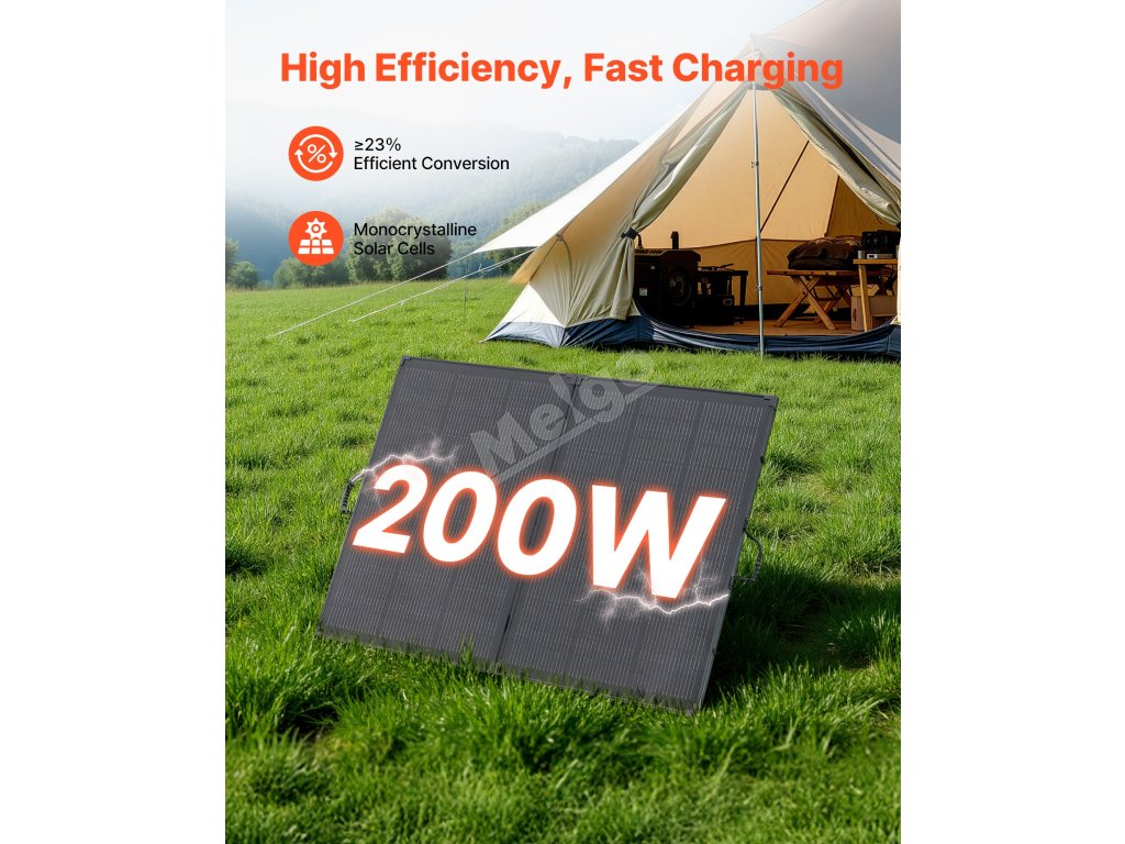 Napájejte svá outdoorová dobrodružství pomocí našeho přenosného skládacího solárního panelu o výkonu 200 W. Díky vysoce účinným monokrystalickým článkům a ≥23% účinnosti konverze poskytuje spolehlivou energii pro rychlé nabíjení zařízení - nezbytný společník pro kempování v přírodě, karavaning a turistické výlety.