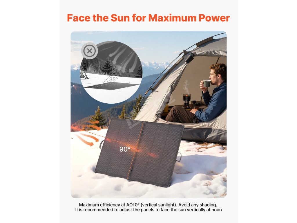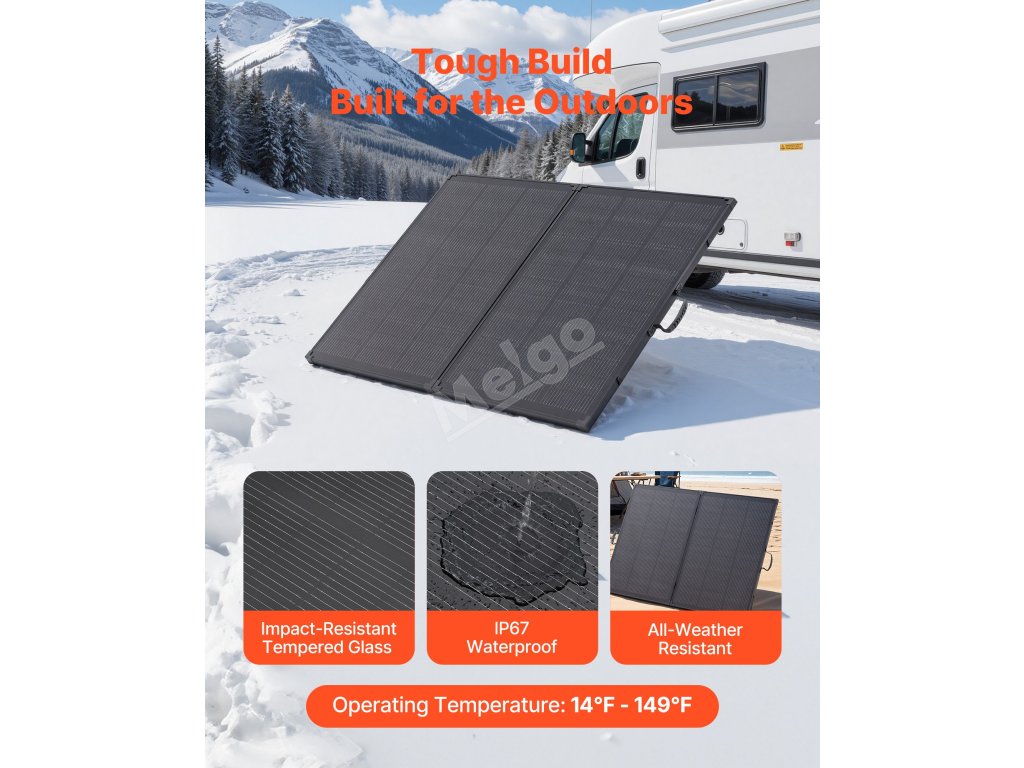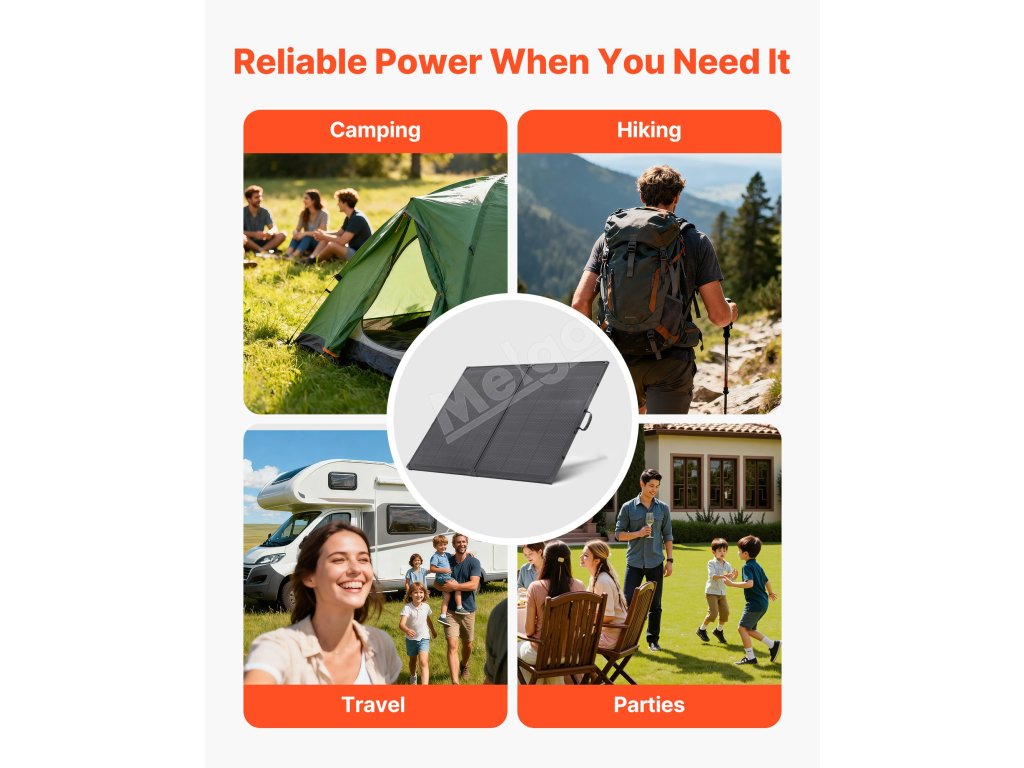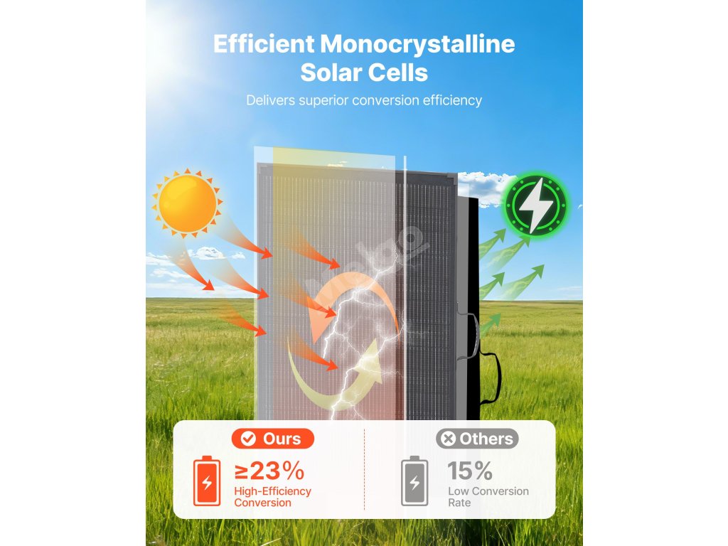 Tento přenosný monokrystalický solární panel, který je skládací, odolný a spolehlivý, je ideálním společníkem pro outdoorová dobrodružství - kempování, turistiku nebo karavaning - a účinně přeměňuje sluneční světlo na použitelnou energii.