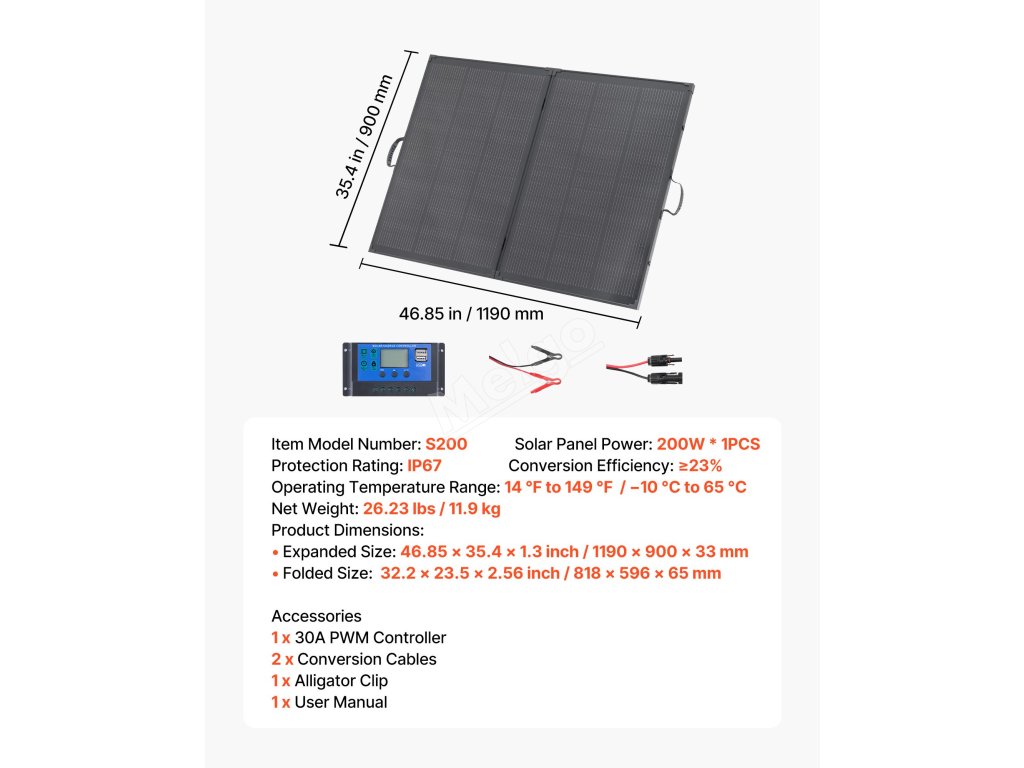 Skládací solární panel 200W monokrystalický 23% účinnost 30A PWM IP67