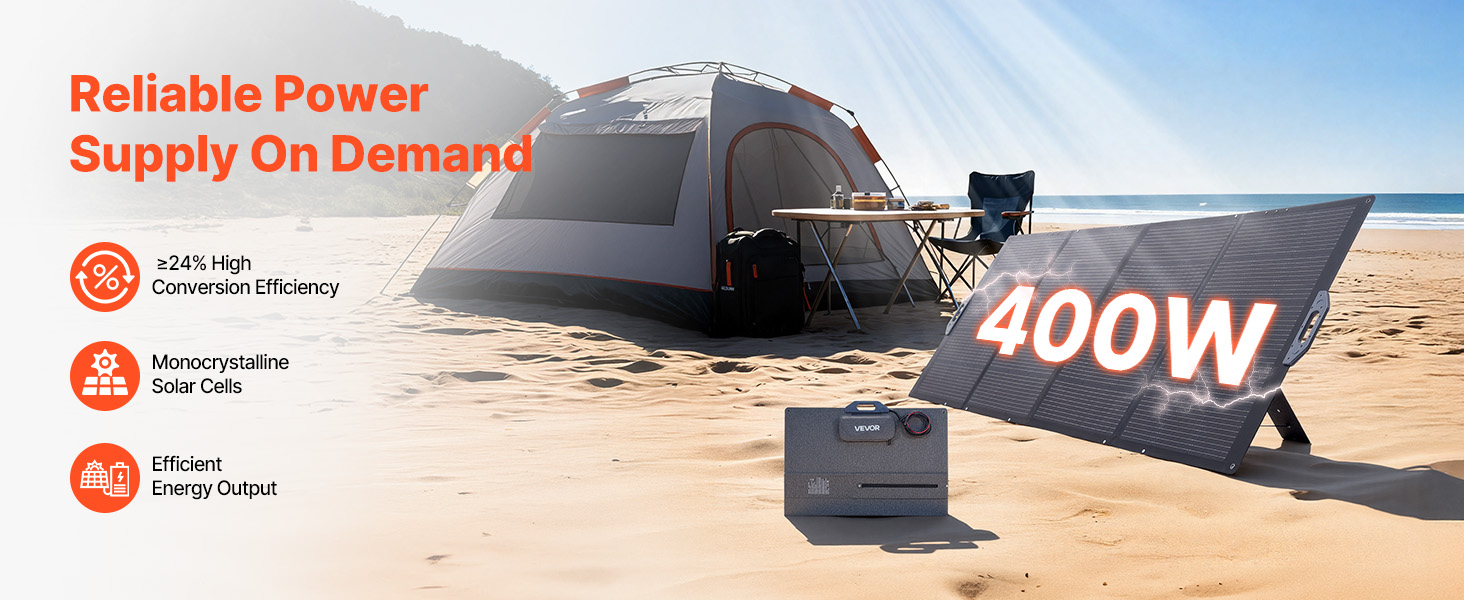 Napájejte svá outdoorová dobrodružství pomocí našeho přenosného skládacího solárního panelu s výkonem 400 W. Díky vysoce účinným monokrystalickým článkům a účinnosti konverze ≥ 24 % poskytuje spolehlivou energii pro rychlé nabíjení zařízení - nezbytný společník pro domácí zálohování, kempování, karavaning a turistické výlety.
