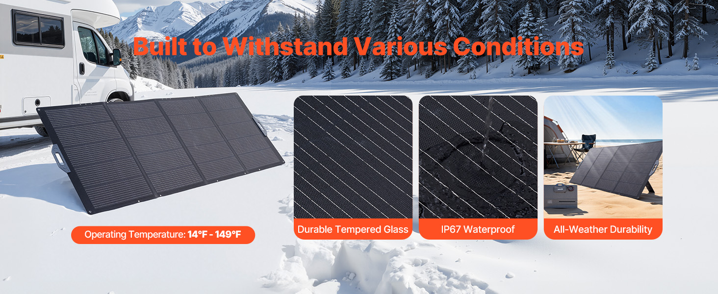 Tento skládací solární panel se stupněm krytí IP67 spolehlivě funguje při teplotách od -10 °C do 65 °C a zajišťuje stabilní a dlouhodobý výkon v různých venkovních prostředích.