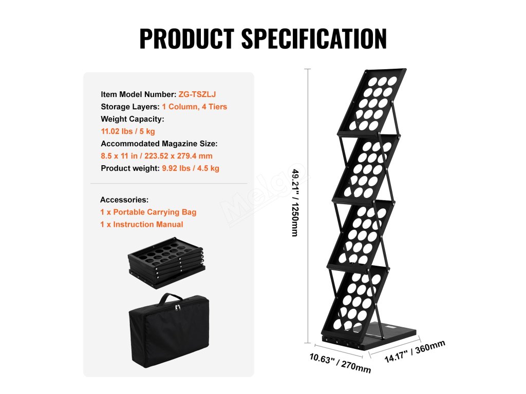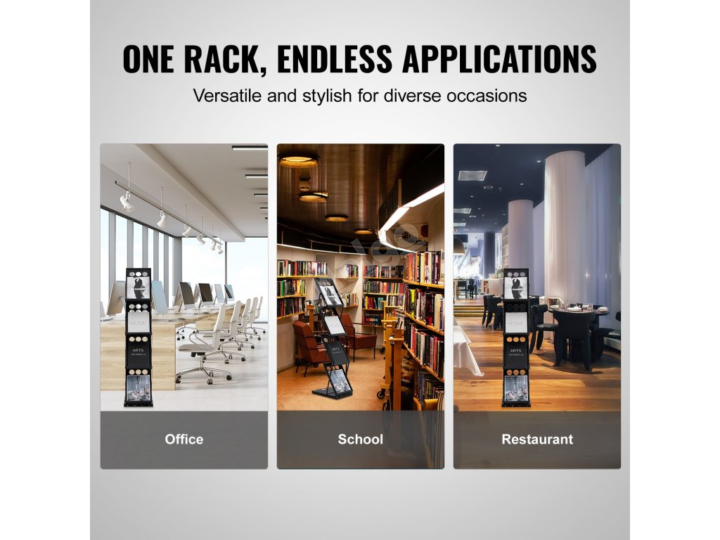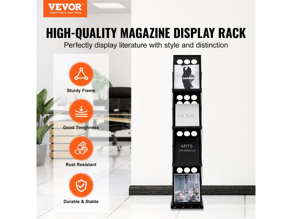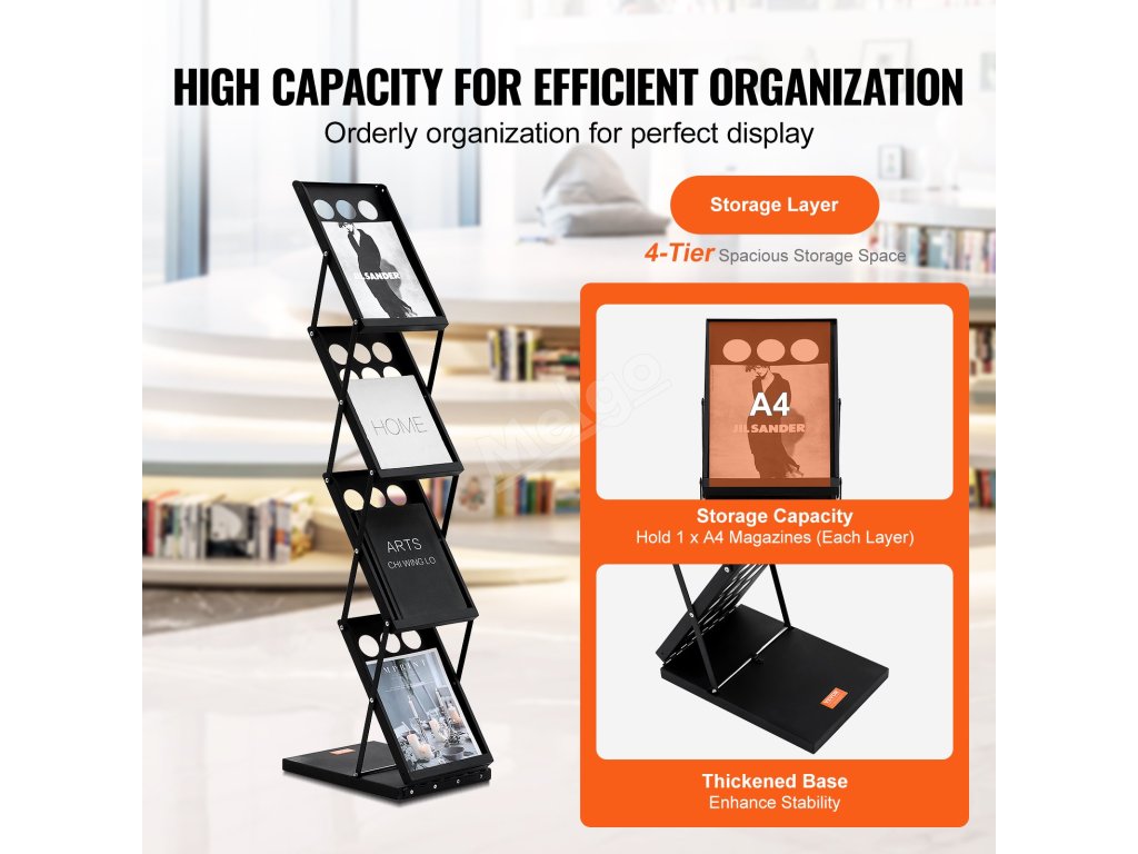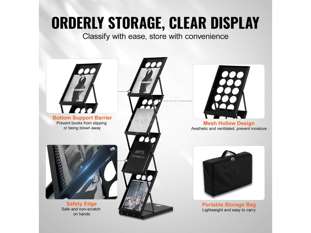 Perfektně vystavte svou brožuru pomocí čtyřúrovňového skládacího stojanu VEVOR se 4 kapsami. Je navržen s vysokou kvalitou, odolností a všestranností, nabízí dostatek úložného prostoru, ohleduplný design a dokonalý efekt zobrazení. Vyberte si náš stojan, který povýší každý časopis na výrazný středobod!
