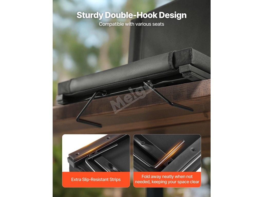 Toto sedadlo na stadion je vybaveno dvěma diskrétními háčky a zůstává na svém místě na tribunách, lavičkách nebo na rovném terénu. Pro zvýšení stability stačí háčky jednoduše vytáhnout, abyste si mohli vychutnat sportovní zápasy, koncerty a venkovní akce s větším pohodlím a uvolněním.