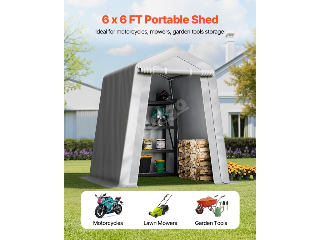 Skladovací stan 6×6 ft, rolovací dveře, větrání, voděodolný kryt