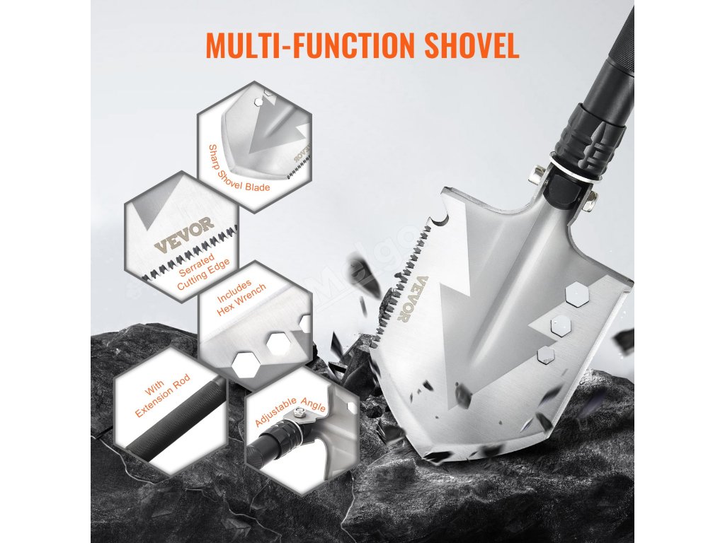 Tato skládací lopata pro přežití je ideální pro outdoorové aktivity, jako je turistika a kempování. Slouží také jako spolehlivý nástroj pro nouzové situace v domácnosti a zahradničení.