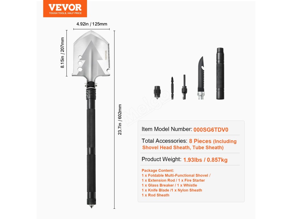Sklápěcí multifunkční lopata 8v1 pro kemp a nouzové použití
