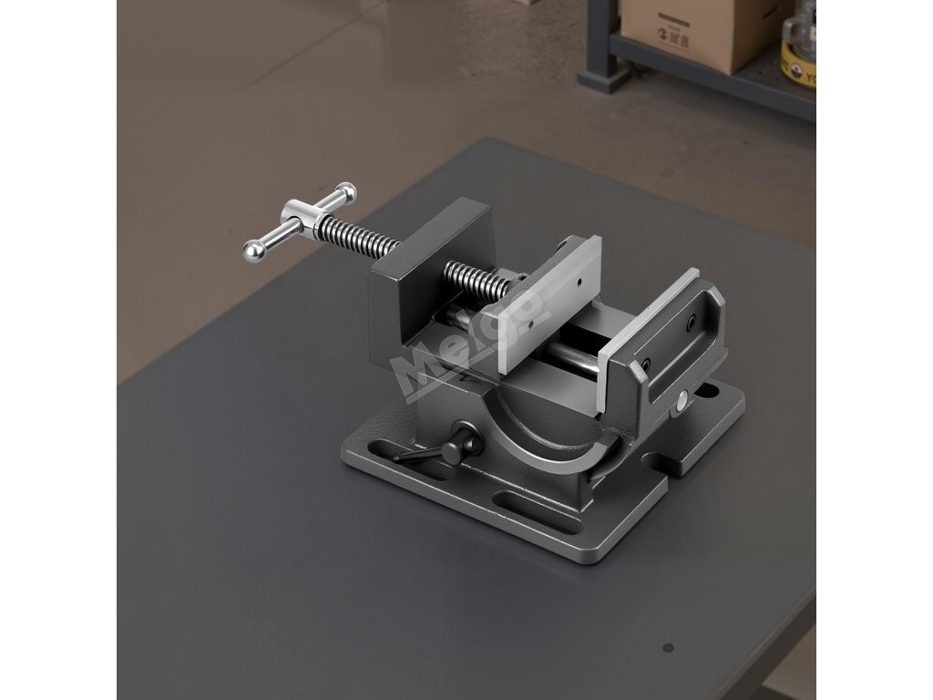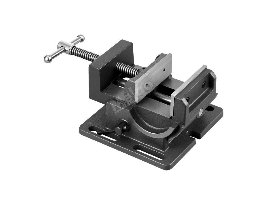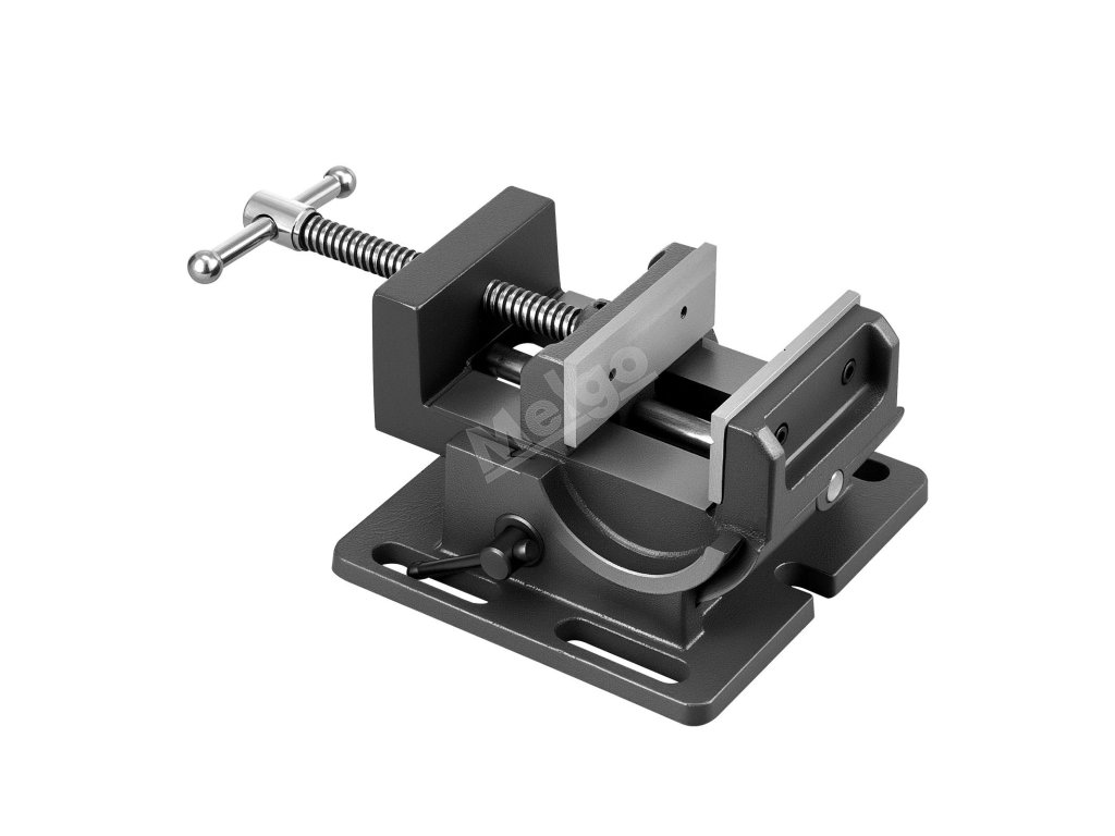 Tento sklopný svěrák je vyroben z vysoce odolné litiny a má přehlednou stupnici pro přesné nastavení úhlu. Umožňuje naklápění v rozsahu 0-90°, takže je ideální pro frézky, vrtačky a další zařízení.