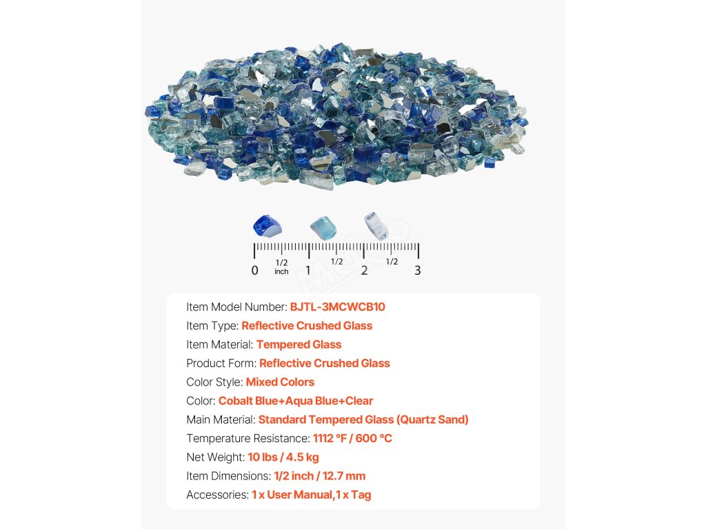 Skleněné kameny do krbu 10 lbs/4.5kg 1/2-inch/12.7mm kobalt+aqua+čirá