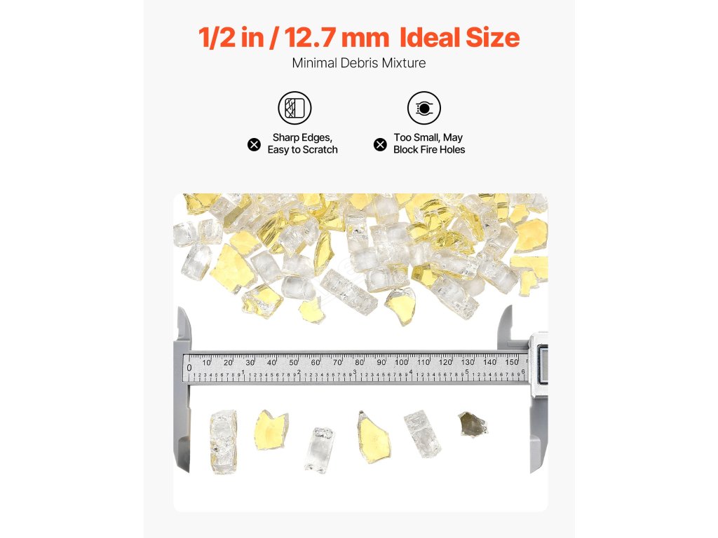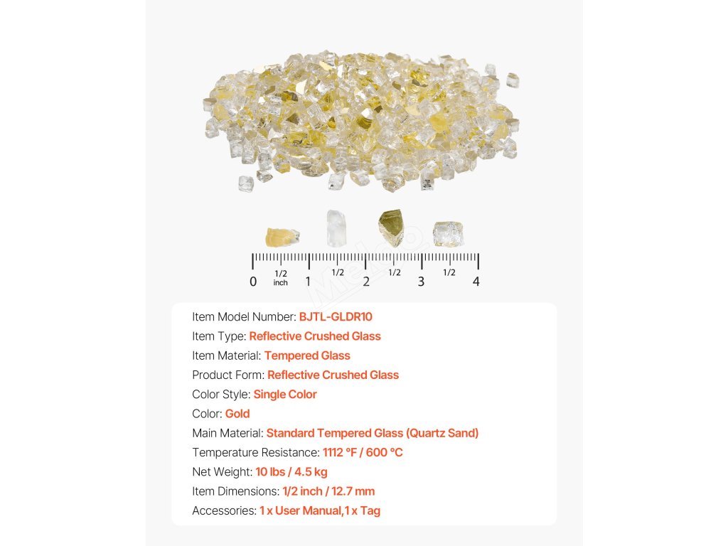 Skleněné kameny do krbu 4,5 kg 12,7 mm reflexní bez kouře zlaté