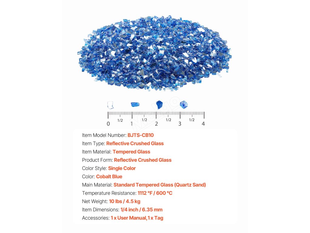 Skleněné kamínky do krbu 10lbs / 4.5kg 1/4-inch / 6.35mm kobaltové