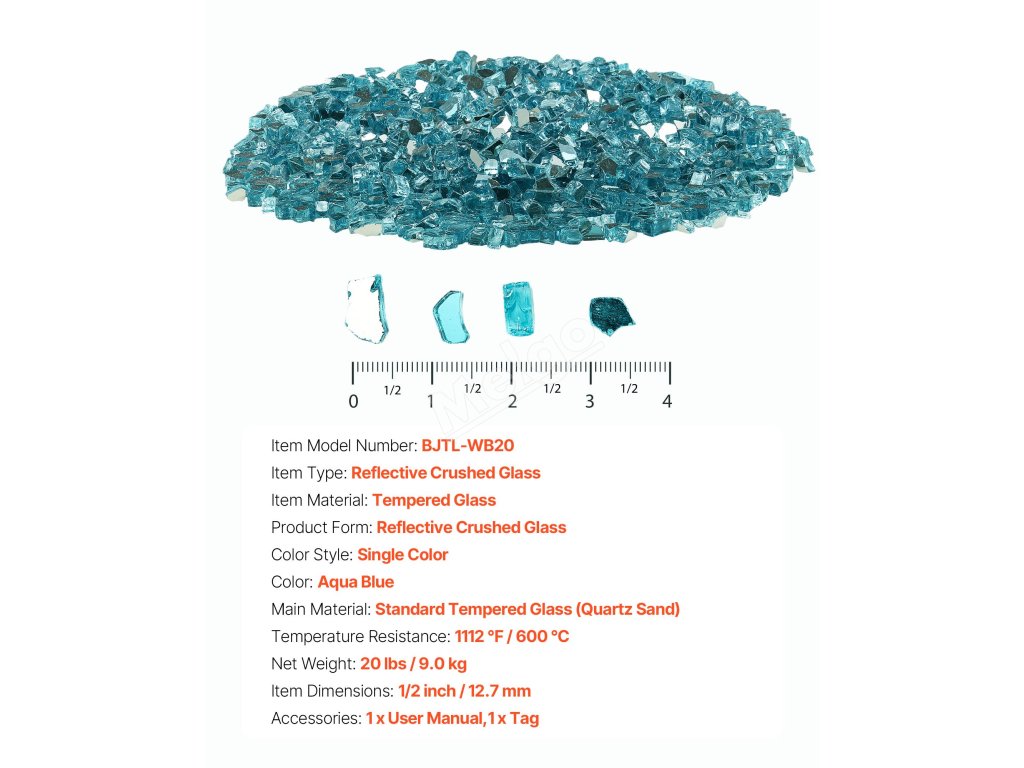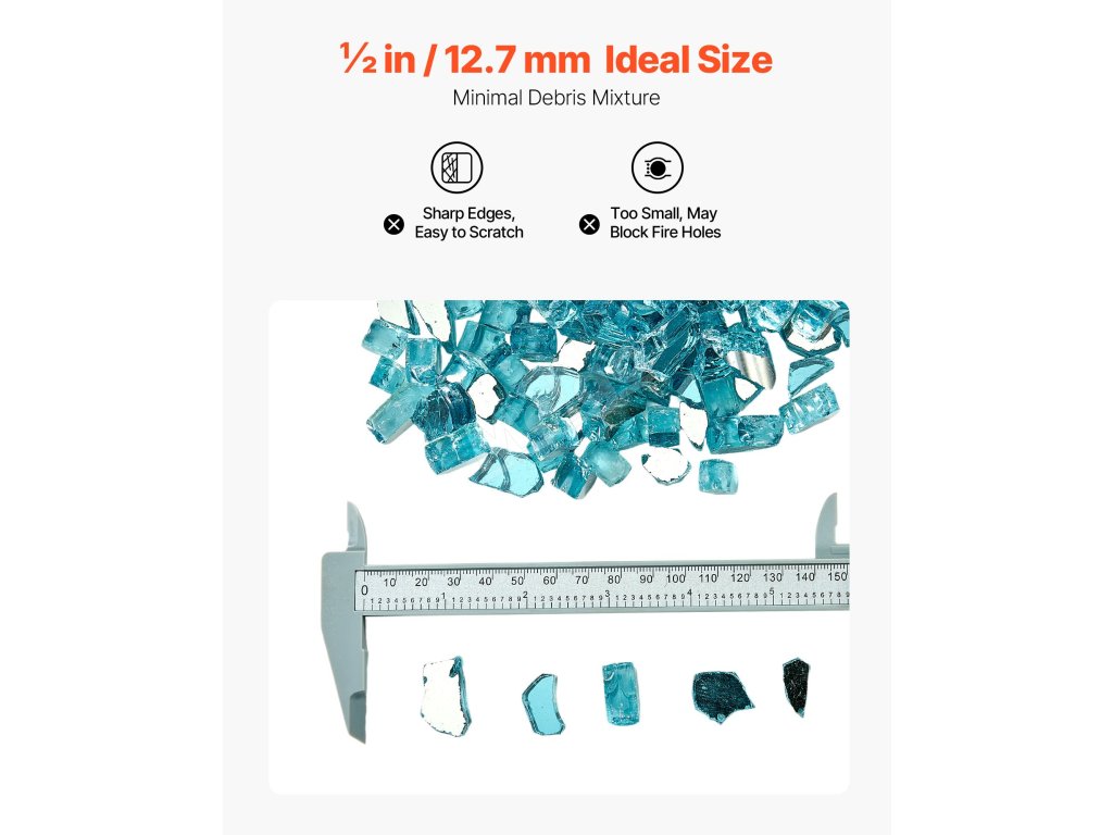 Skleněné kamínky do krbu 20 lbs / 9 kg, 1/2-inch / 12.7 mm aqua blue