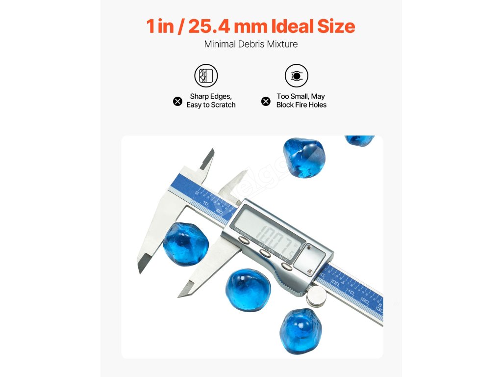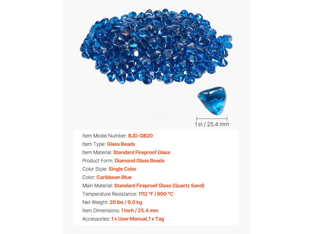 Skleněné kamínky do krbu 20 lbs/9 kg, 1 inch/25.4 mm, karibská modrá