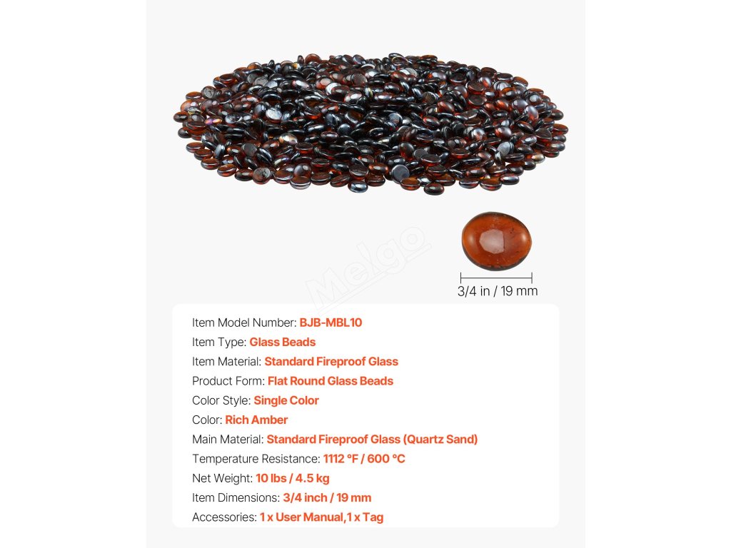 Skleněné kamínky do topeniště 10lbs/4.5kg, 3/4-inch/19.05 mm, jantarové