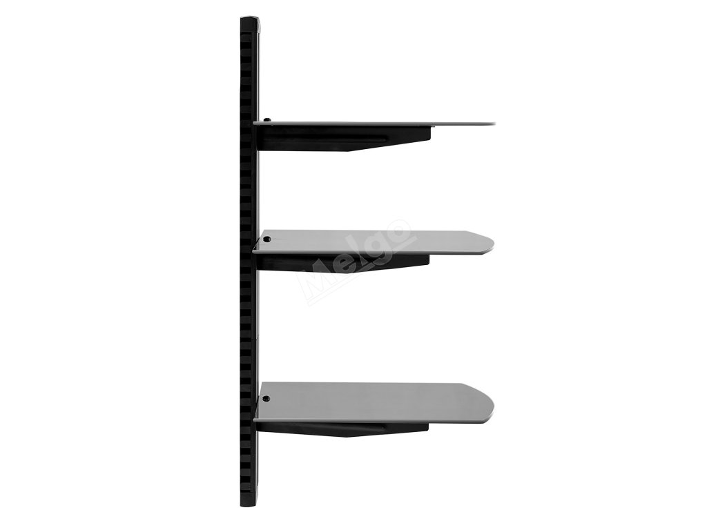 Tento nástěnný audio-video stojan unese až 18 kg na jednu polici a je vybaven odolným tvrzeným sklem odolným proti poškrábání a stabilním rámem z ocelového plechu.