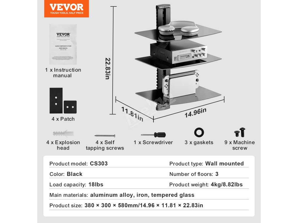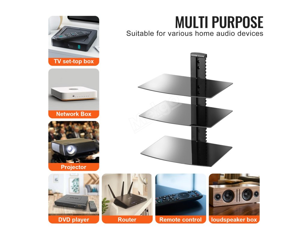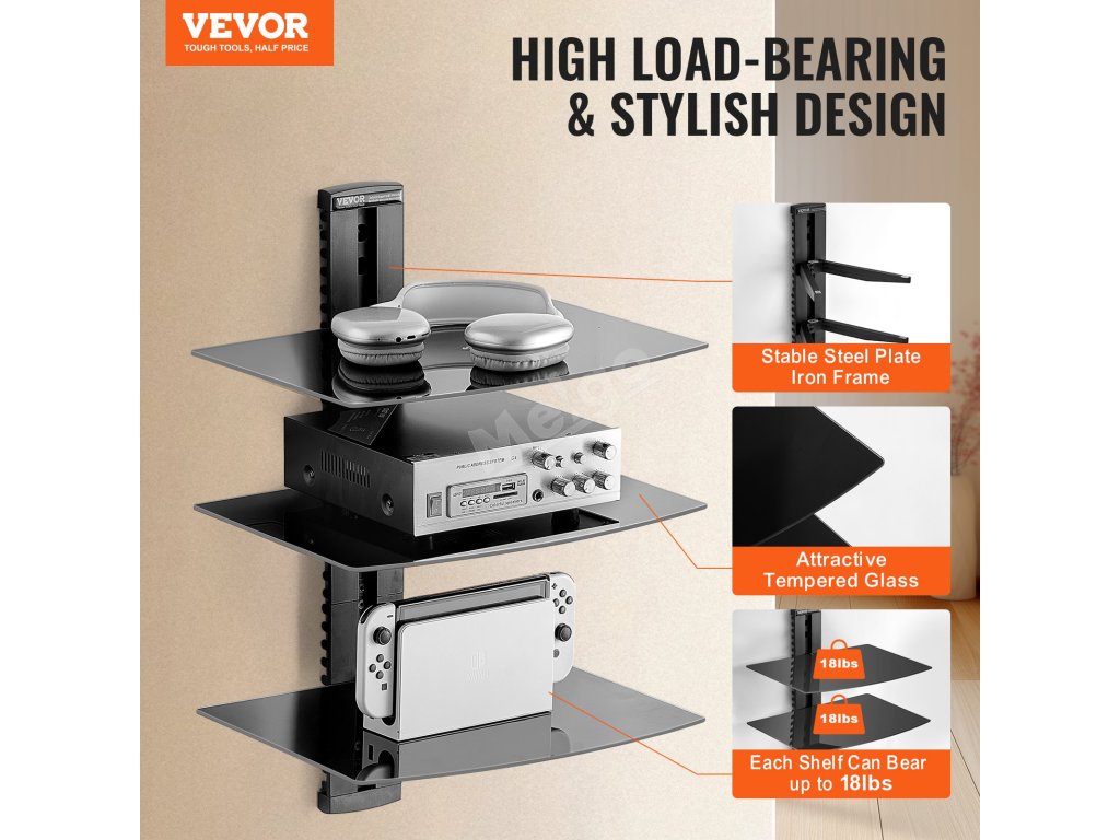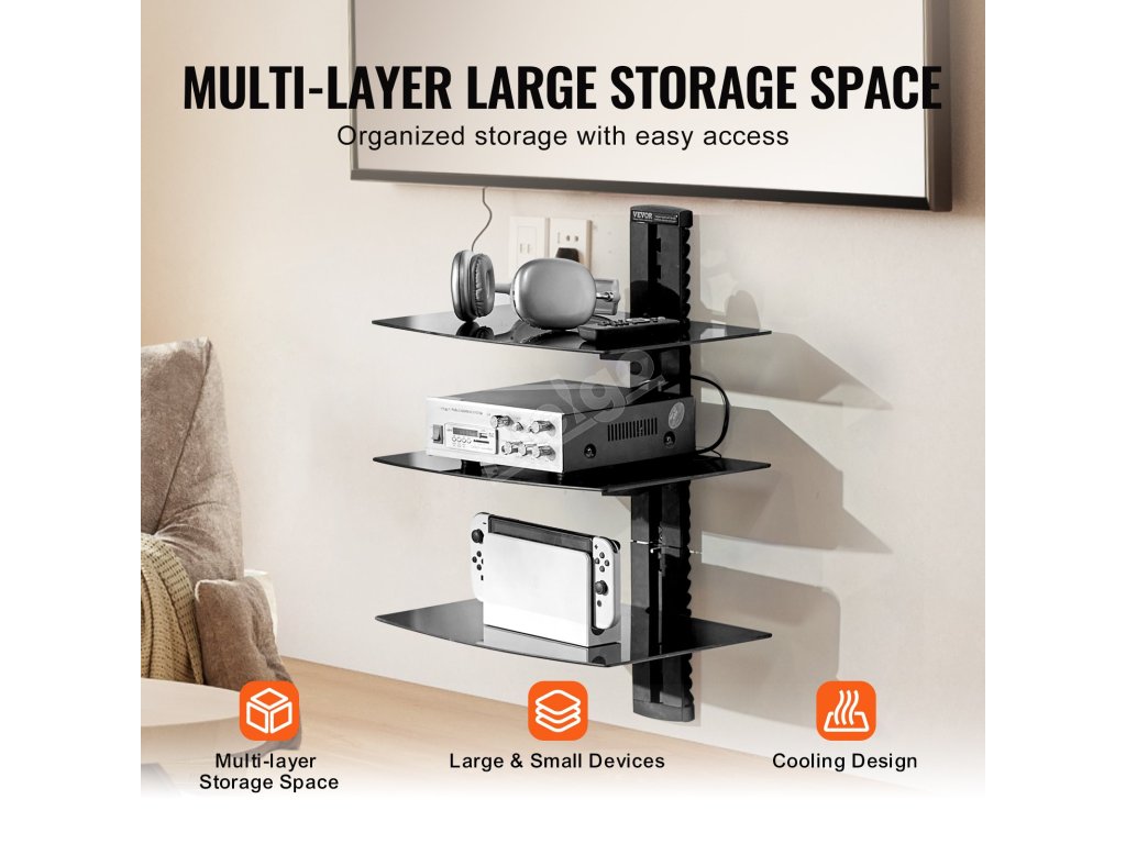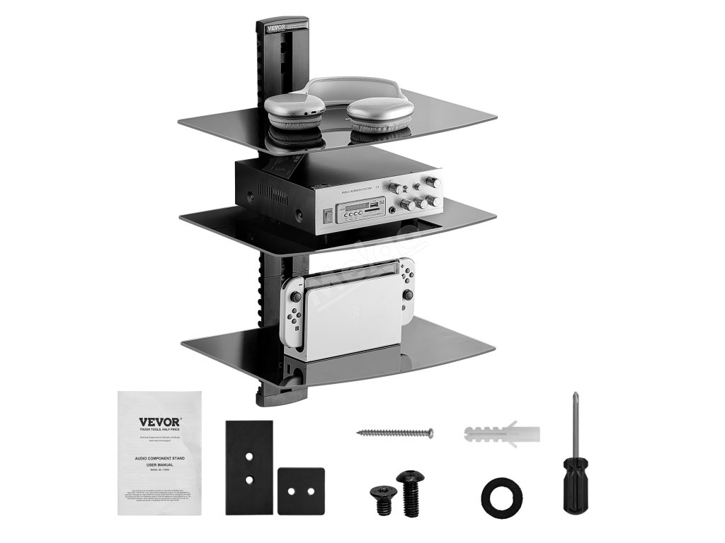 VEVOR 3úrovňový nástěnný stojan na AV média - uvolní místo na vašem stole!