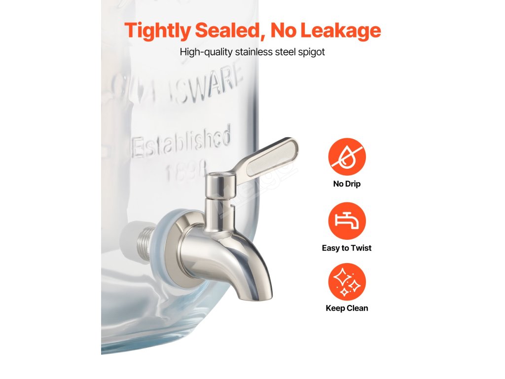 Výdajník džúsov je vyrobený z potravinárskeho skla, je odolný voči škvrnám, trvácny a vhodný do umývačky riadu. Ideálny na ľadový čaj, džús alebo vodu.