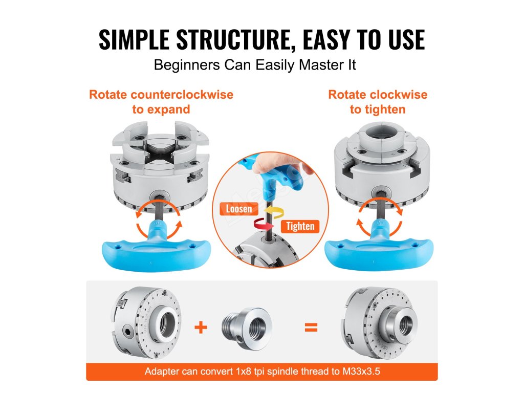 Flexibilita a pohodlí funkcí sklíčidla jako klíčové součásti soustruhu je pro zvýšení efektivity práce prvořadá. Naše čtyřčelisťové soustružnické sklíčidlo je vybaveno nastavitelnou velikostí čelistí, což obsluze umožňuje bez námahy rozšiřovat a smršťovat čelisti pouhým otočením klíče s T-rukojetí.